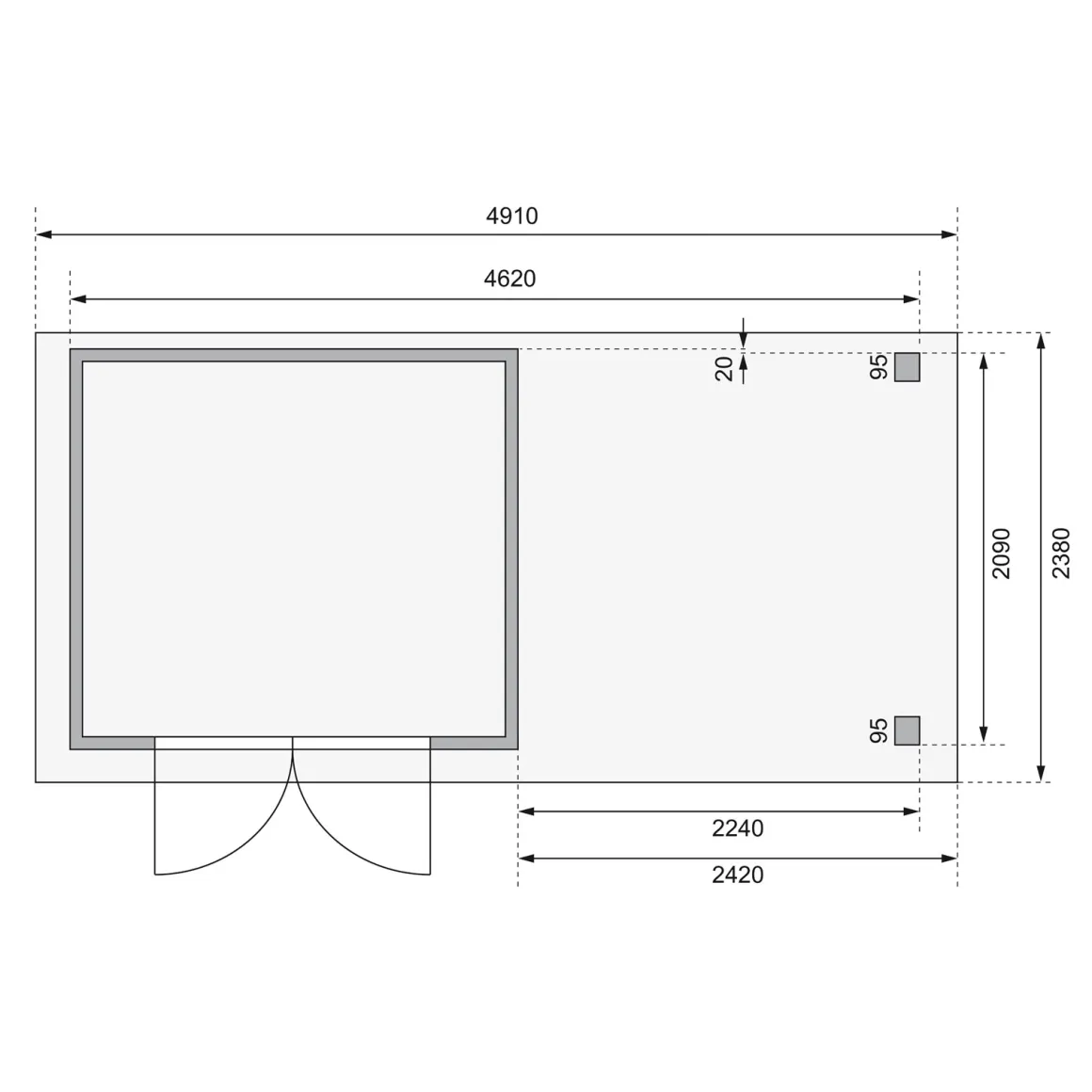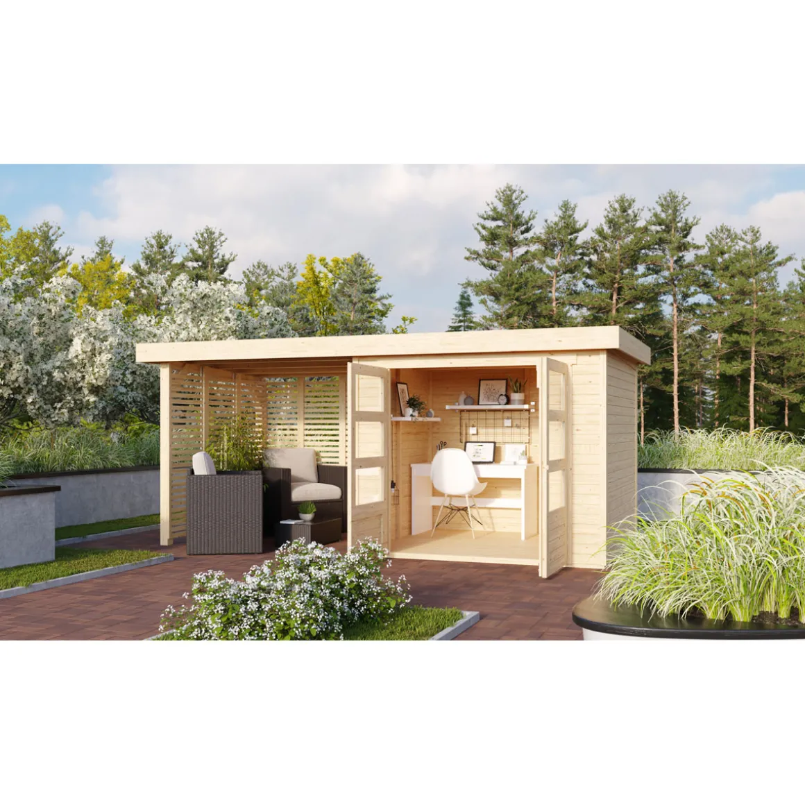 Karibu BBH Askola 3 Set mit Anbaudach naturbelassen