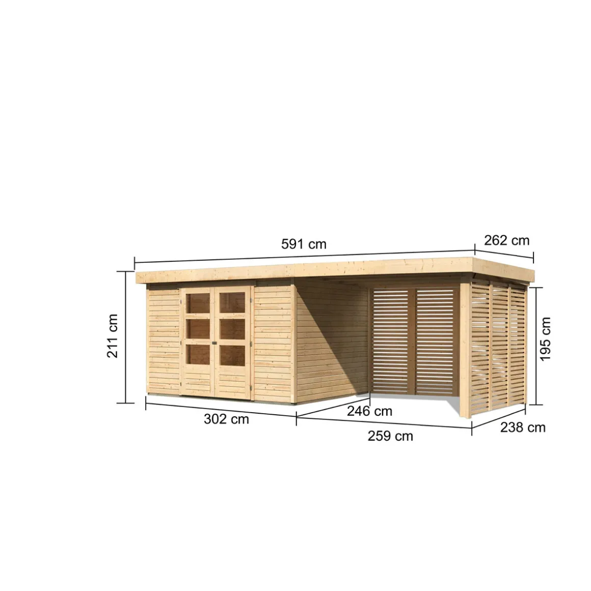 Karibu BBH Askola 5 Set mit Anbaudach naturbelassen