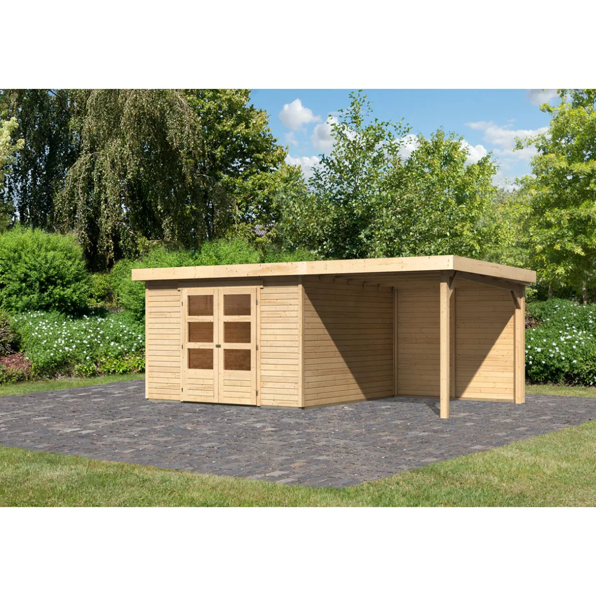 Karibu BBH Askola 6 Set mit Anbaudach naturbelassen