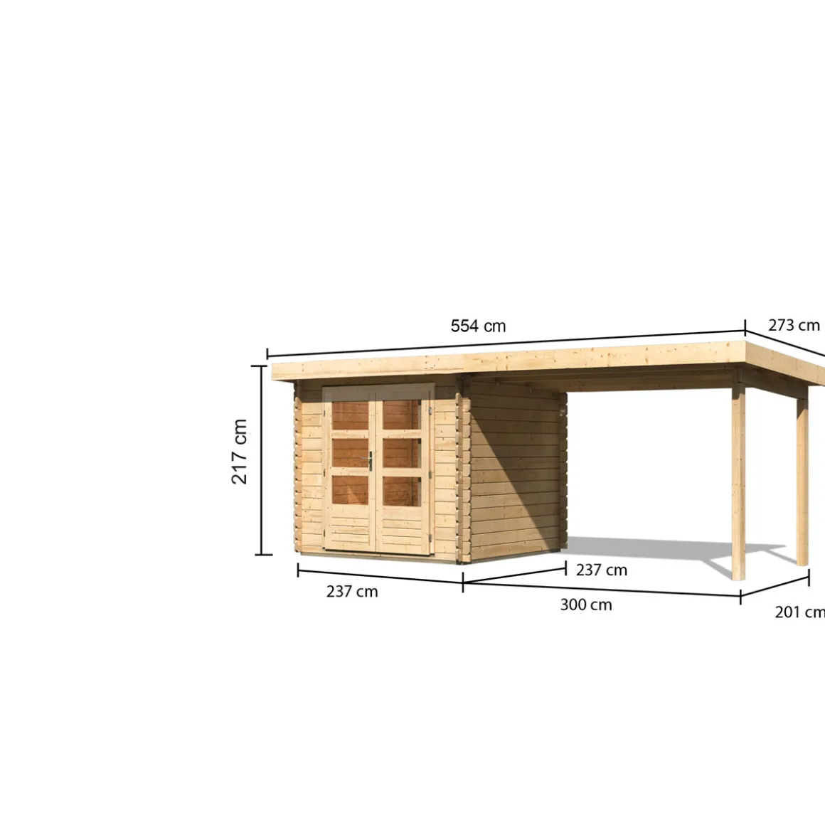 Karibu BBH Bastrup 2 Set mit Anbaudach naturbelassen