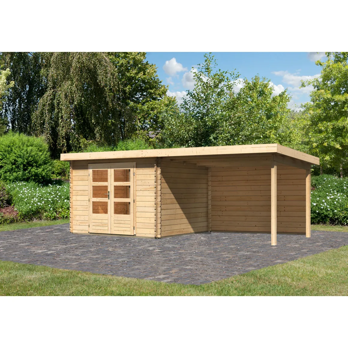 Karibu BBH Bastrup 5 Set mit Anbaudach naturbelassen