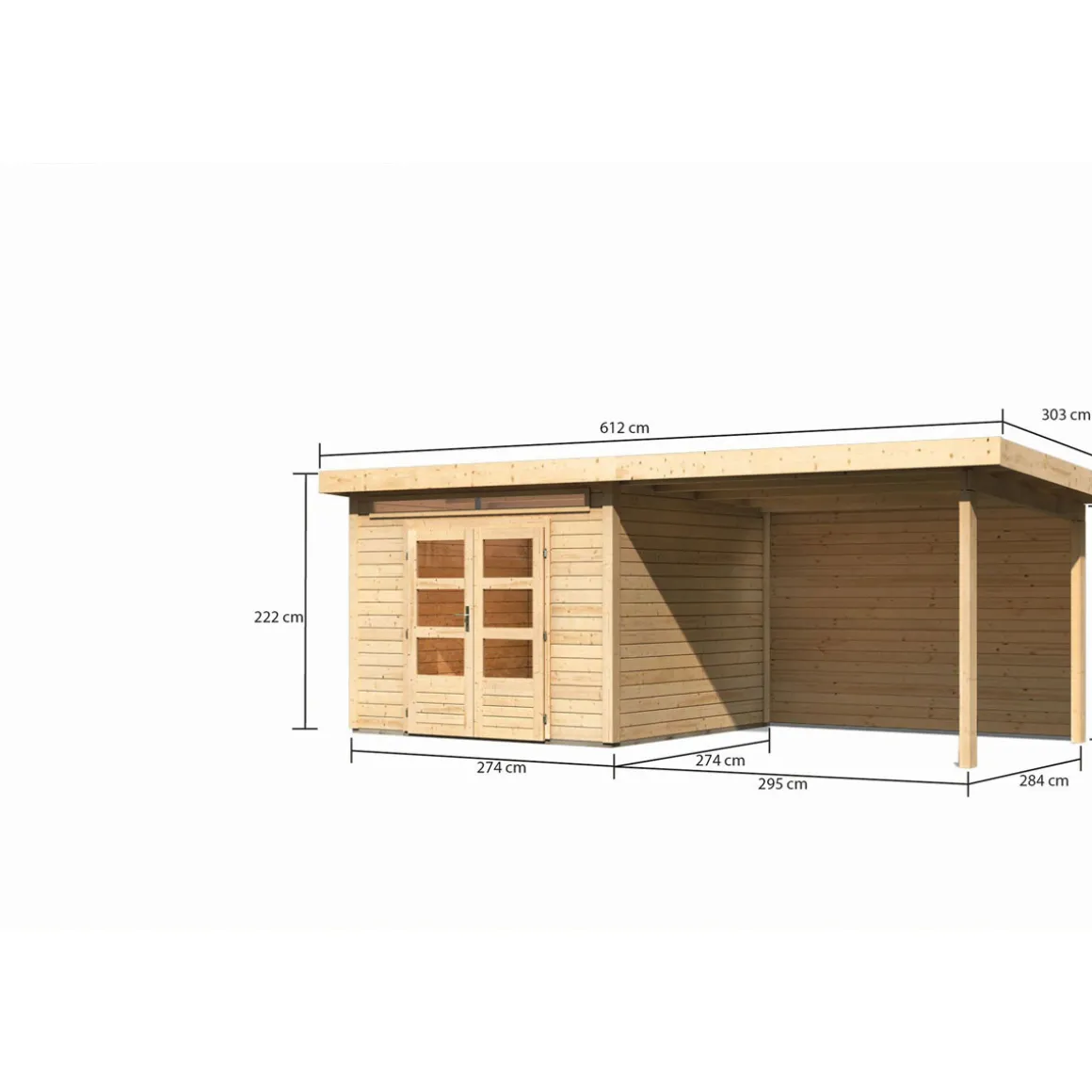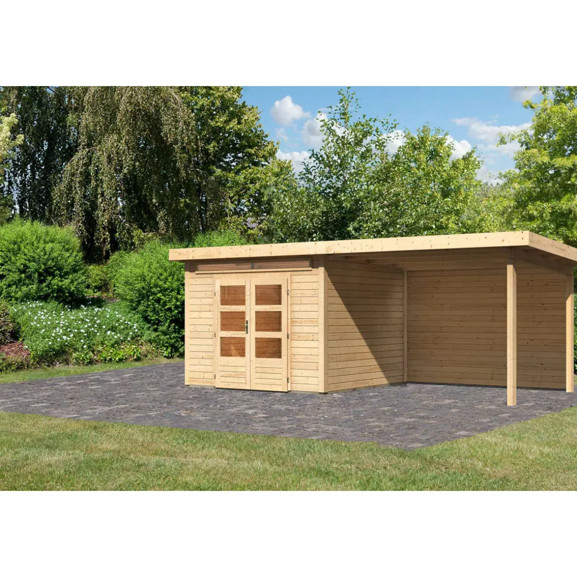 Karibu BBH Kandern 6 Set mit Anbaudach naturbelassen