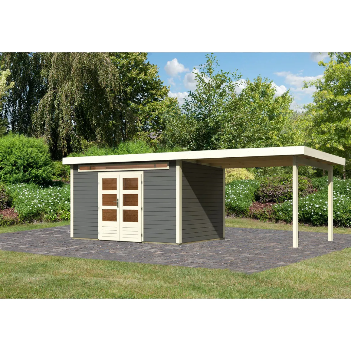 Karibu BBH Kandern 7 Set mit Anbaudach terragrau