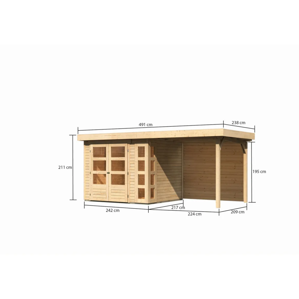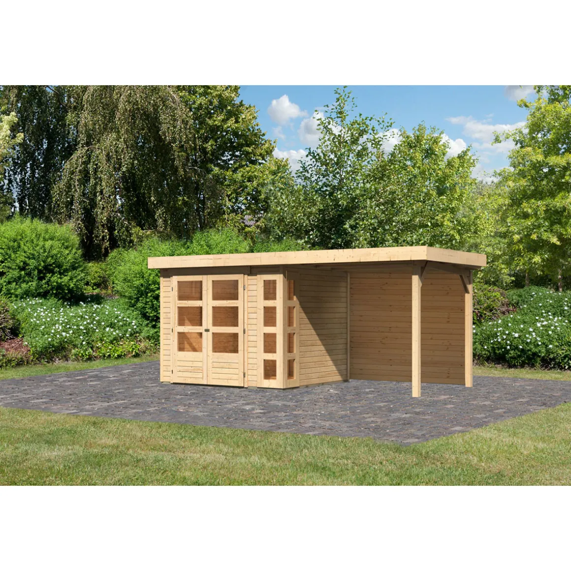 Karibu BBH Kerko 3 Set mit Anbaudach naturbelassen