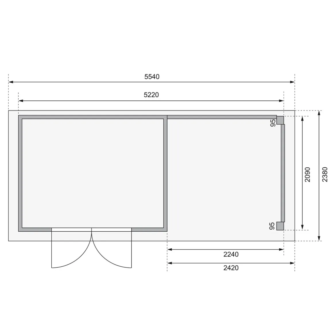 Karibu BBH Kerko 4 Set mit Anbaudach naturbelassen