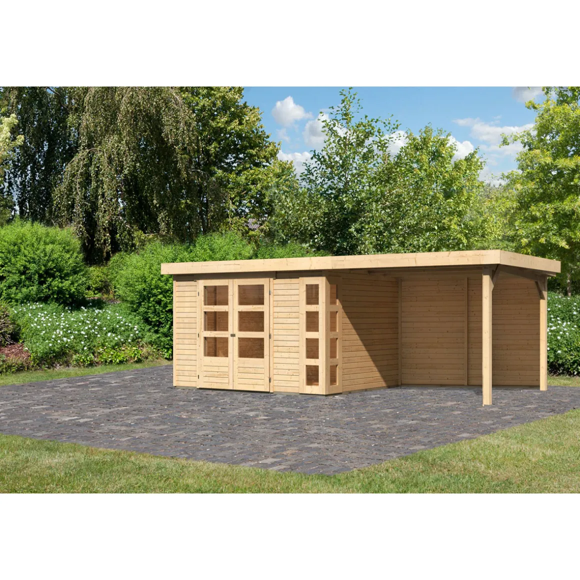 Karibu BBH Kerko 5 Set mit Anbaudach naturbelassen