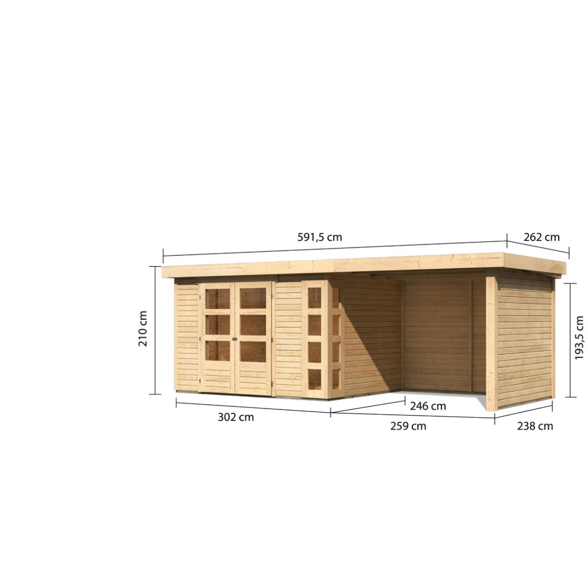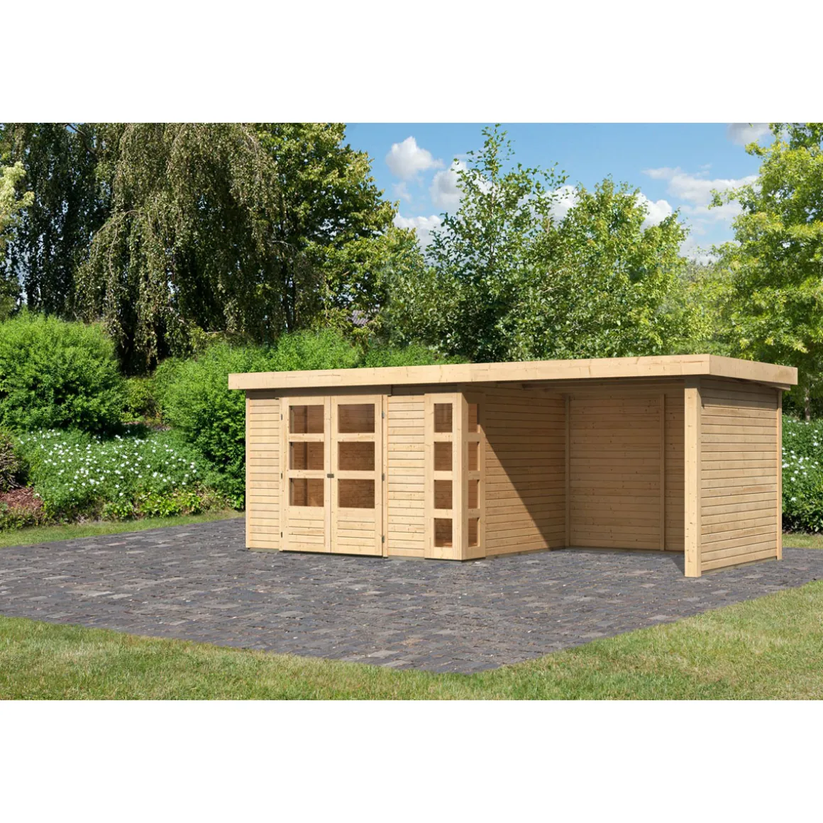 Karibu BBH Kerko 5 Set mit Anbaudach naturbelassen