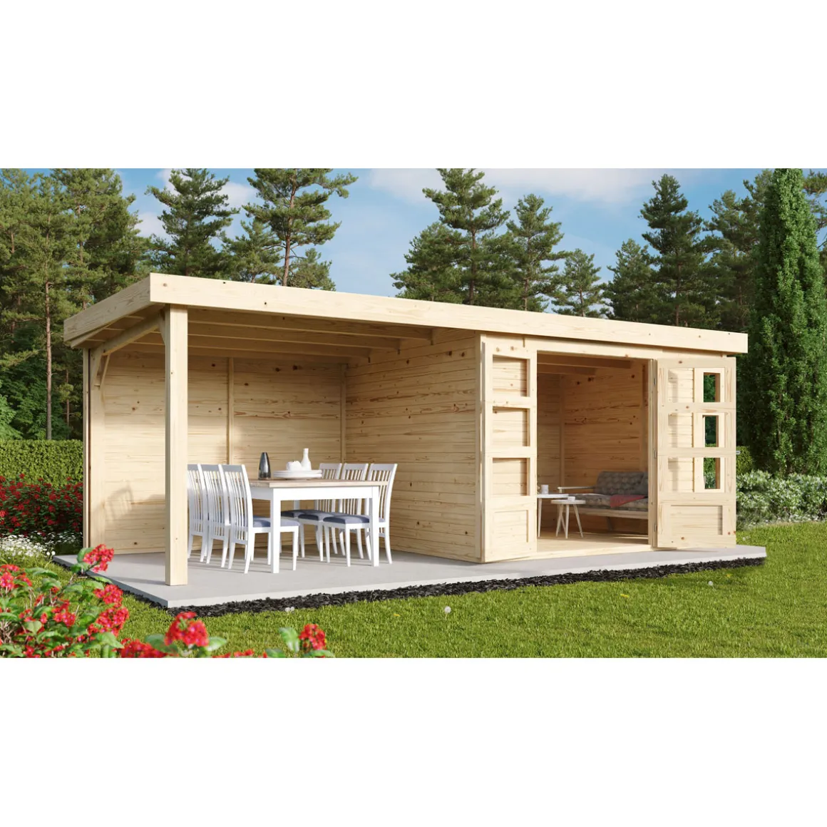 - Gartenhaus aus hochwertiger nordischer Fichte mit wasserabweisender Profilierung