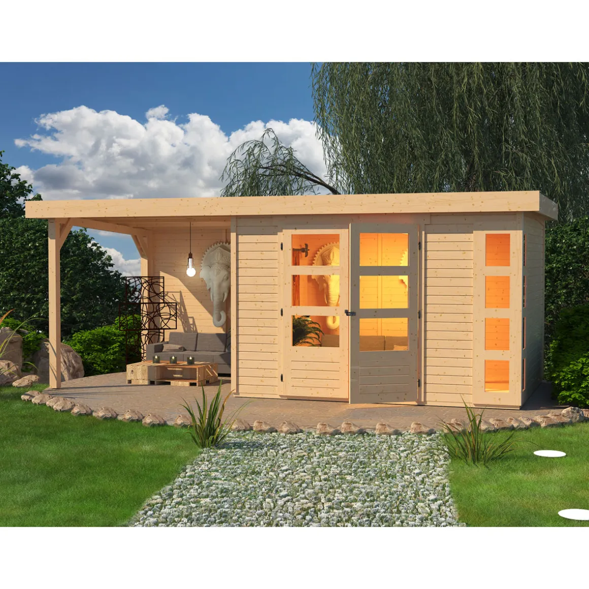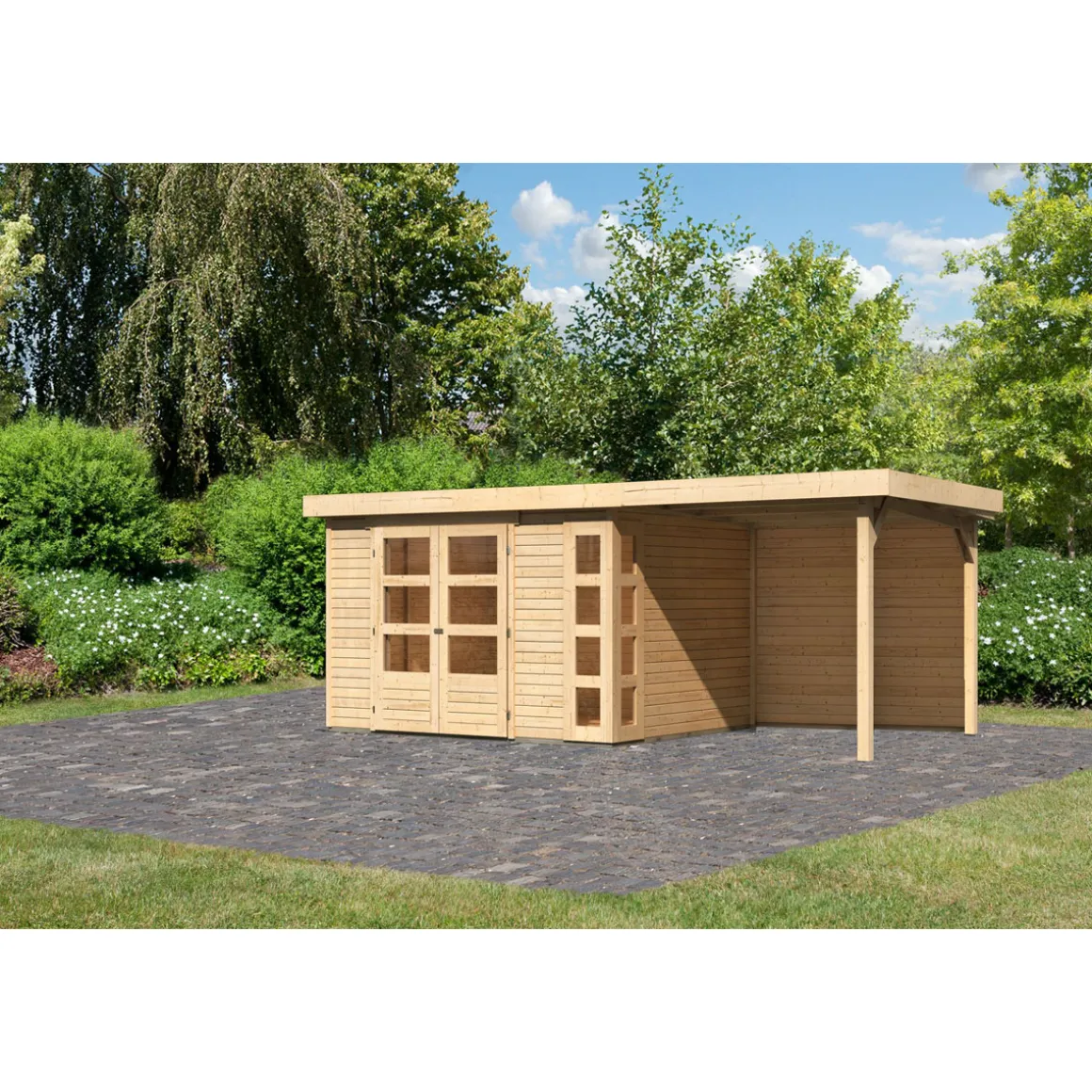 Karibu BBH Kerko 5 Set mit Anbaudach naturbelassen
