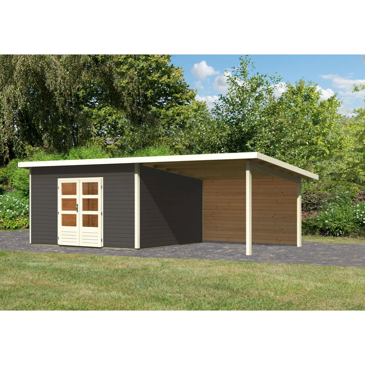 Karibu BBH Northe 5 Set mit Anbaudach terragrau