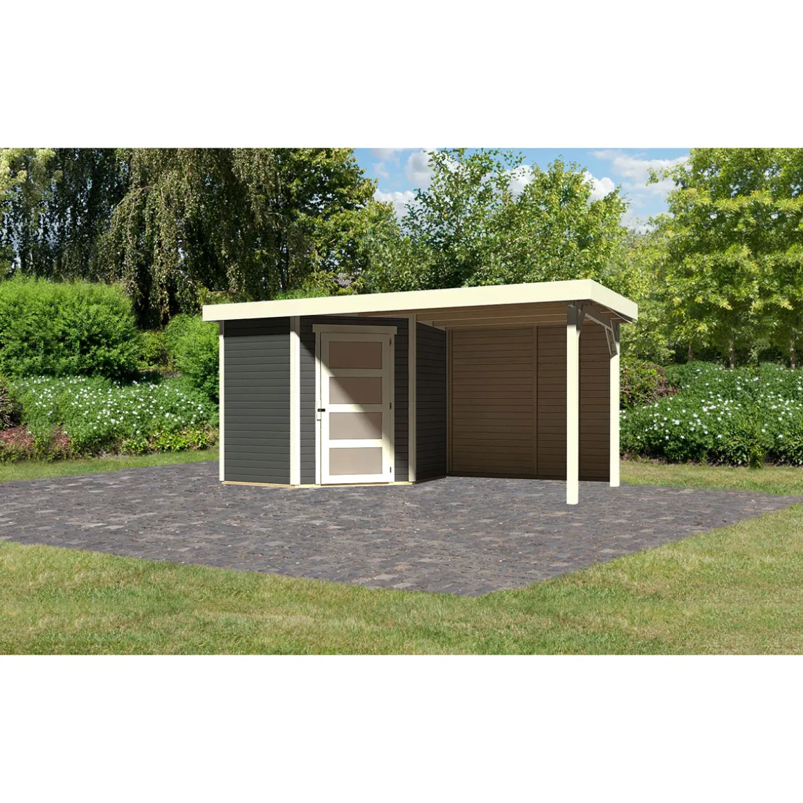 Karibu BBH Schwandorf 3 Set mit Anbau terragrau