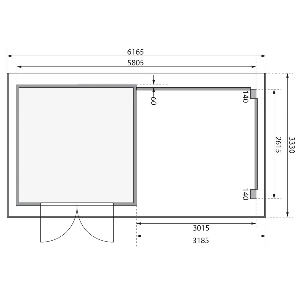 Karibu BBH Trittau 3 Set mit Anbaudach naturbelassen