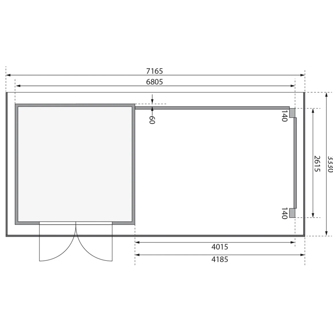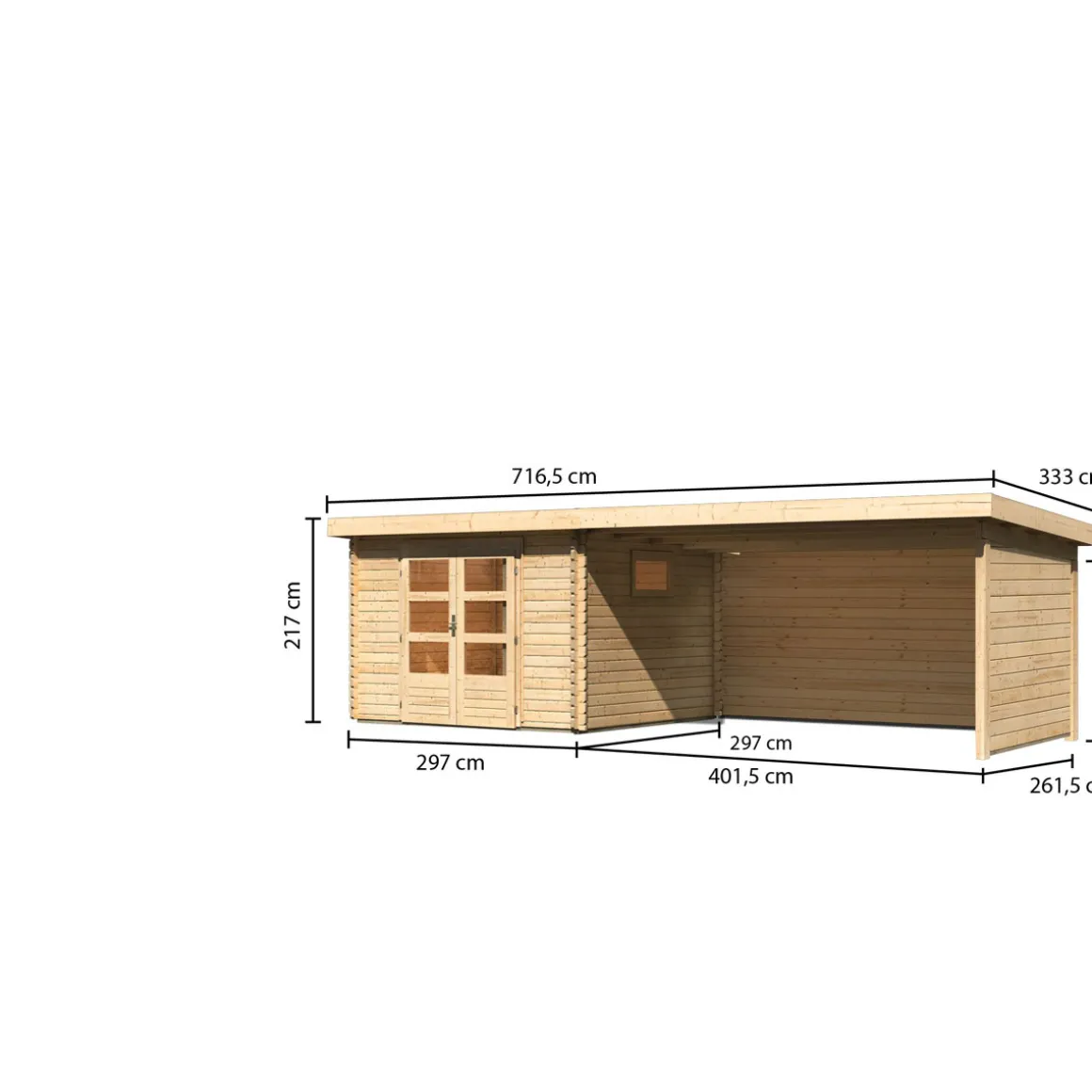 Karibu BBH Trittau 3 Set mit Anbaudach naturbelassen