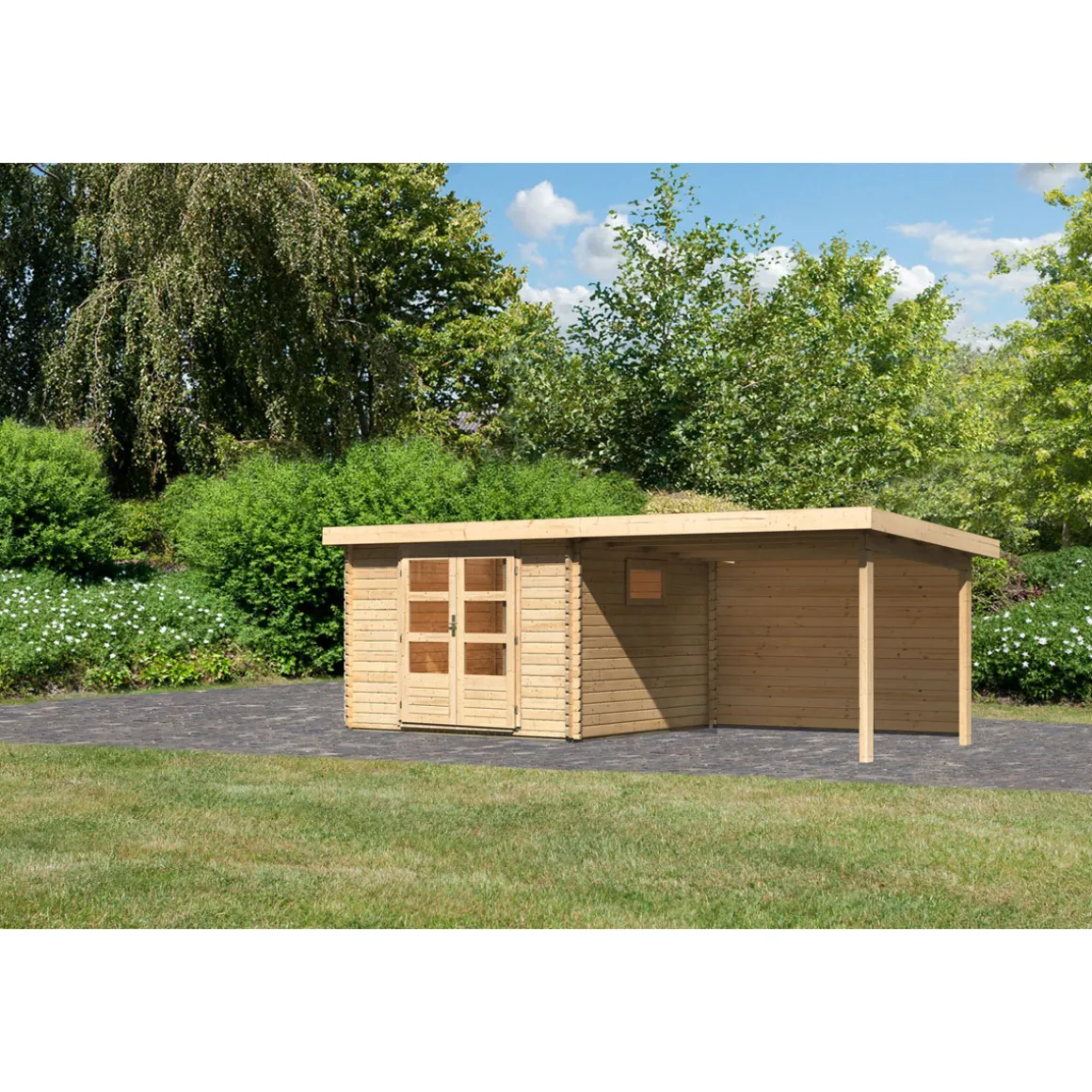 Karibu BBH Trittau 3 Set mit Anbaudach naturbelassen
