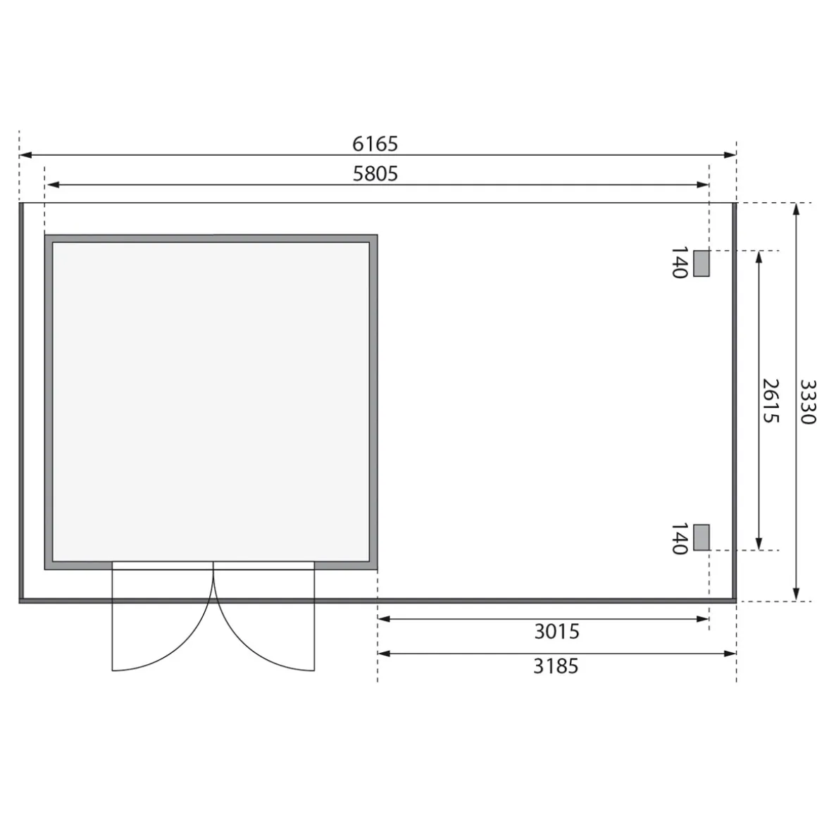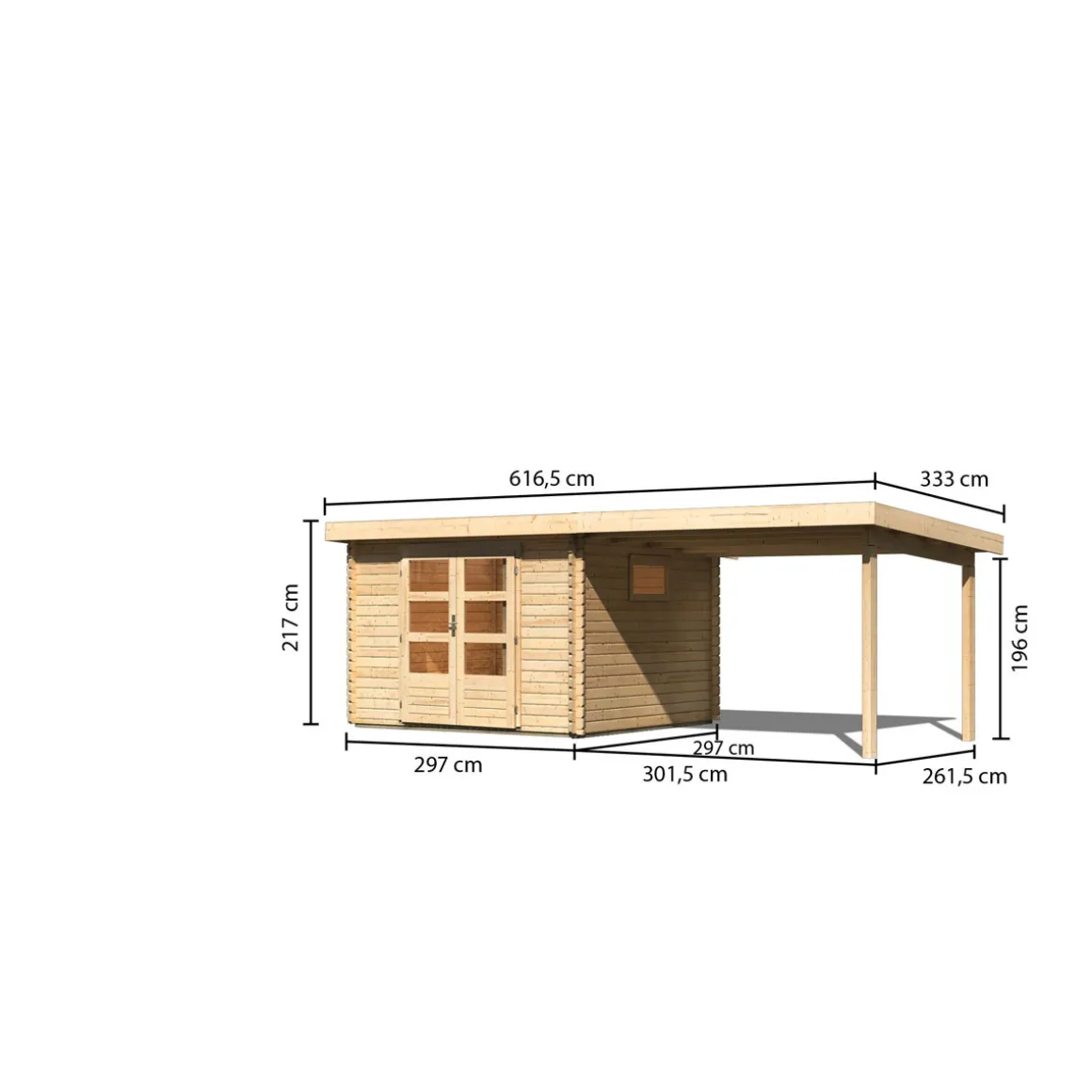 Karibu BBH Trittau 3 Set mit Anbaudach naturbelassen