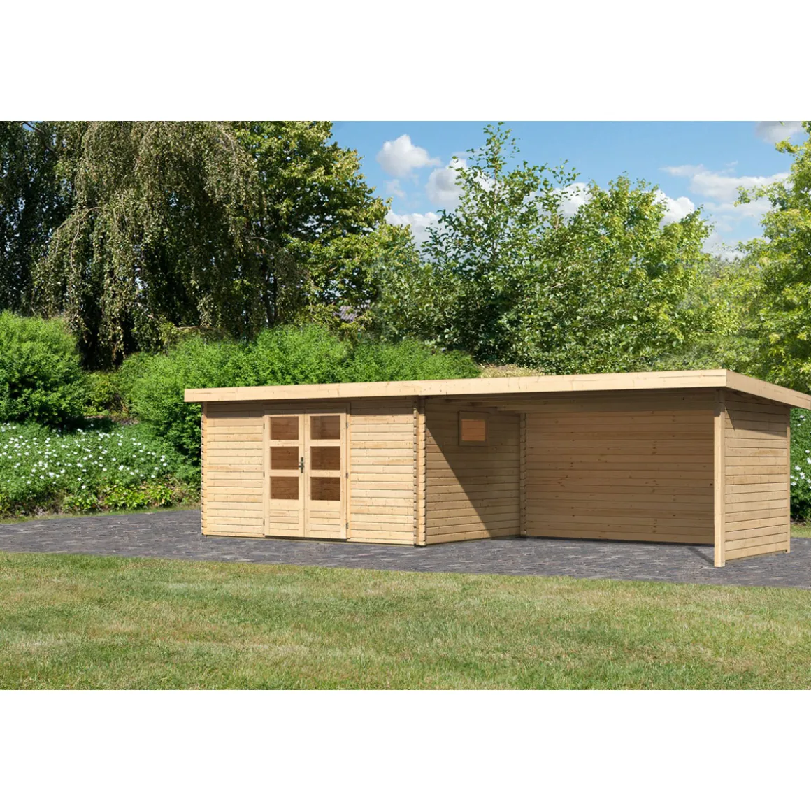 Karibu BBH Trittau 5 Set mit Anbaudach naturbelassen