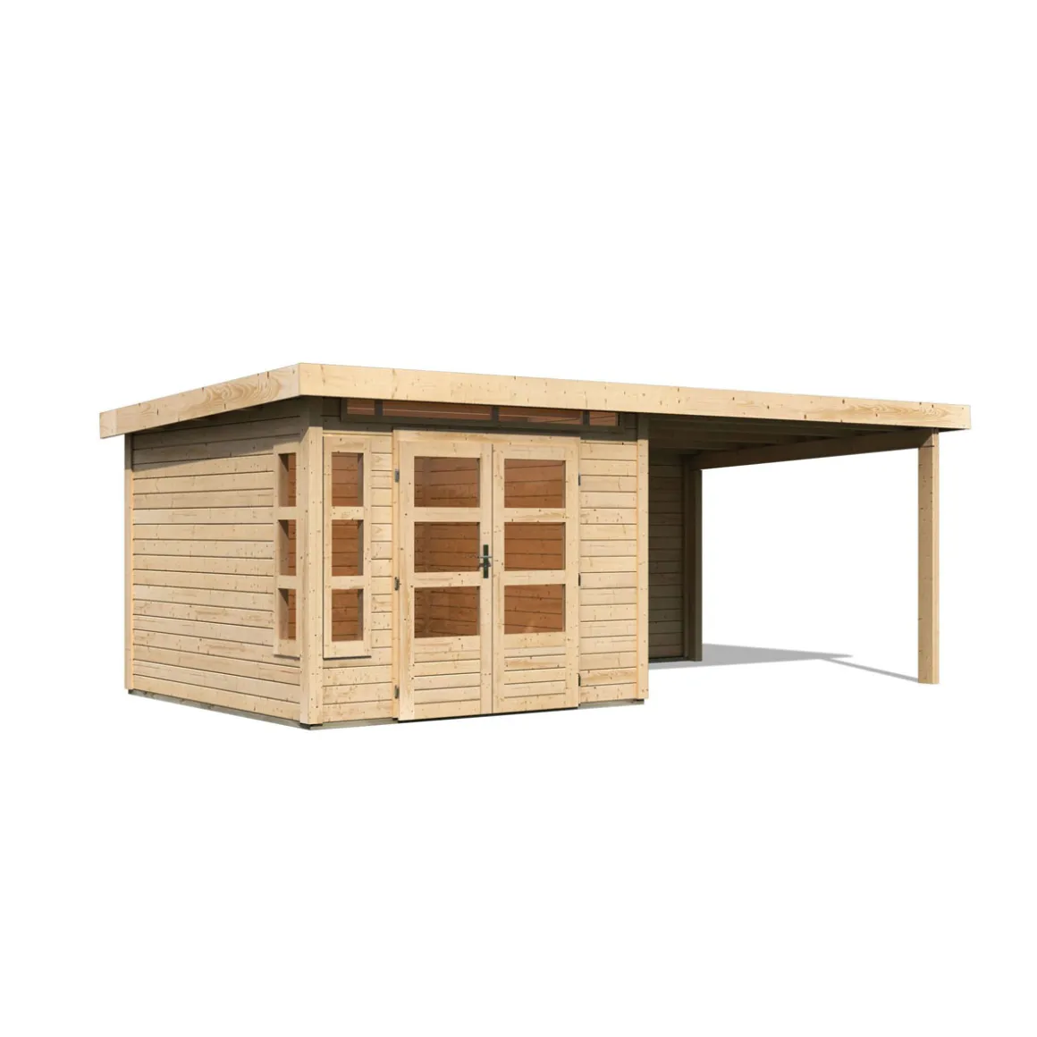 Karibu Blockbohlenhaus Kastorf 6 naturbelassen mit Anbaudach und Rückwand