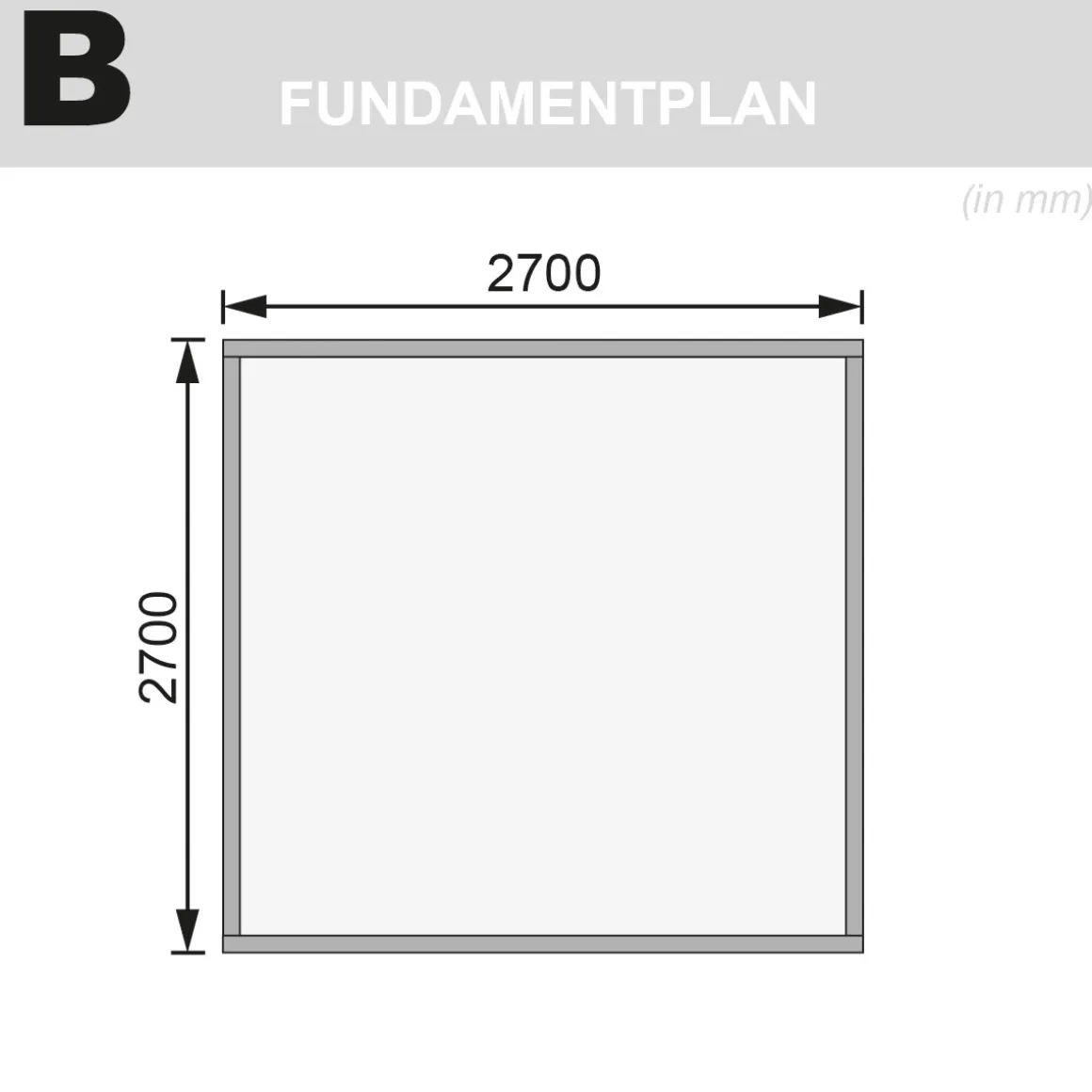 Das Gartenhaus wird aus 28 mm starken Wandbrettern aus nordischer Fichte im Steck-/Schraubsystem gefertigt und gewährleistet somit einen einfachen Aufbau und eine stabile Konstruktion. Das Flachdach besteht aus Masssivholzdach. Die Grundfläche beträgt 7 m² bei einem umbauten Raum von 15 m³. Mit einer Seitenhöhe von 205 cm und einer Firsthöhe von 222 cm bietet das Gartenhaus optimale Raumnutzung. Das Gartenhaus ohne Anbauten hat ein Sockelmaß von 270×270 cm. Bodenbalken sorgen für den Schutz von unten und werden unter das Gartenhaus gelegt. Durch die Kesseldruckimprägnierung der Bodenbalken sind diese vor Witterungseinflüssen und holzzersetzenden Pilzen bereits geschützt. Die praktische und vormontierte Tür sorgt mit Ihren großzügigen Abmessungen und dem Massivholzrahmen für einen einfachen Zutritt in das Gartenhaus und sichert den Inhalt nebenbei effektiv vor unbefugtem Zugriff. Die Verglasung der Lichtausschnitte sorgt für großzügigen Tageslichteinfall.