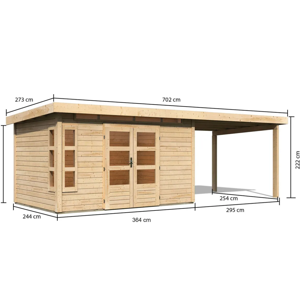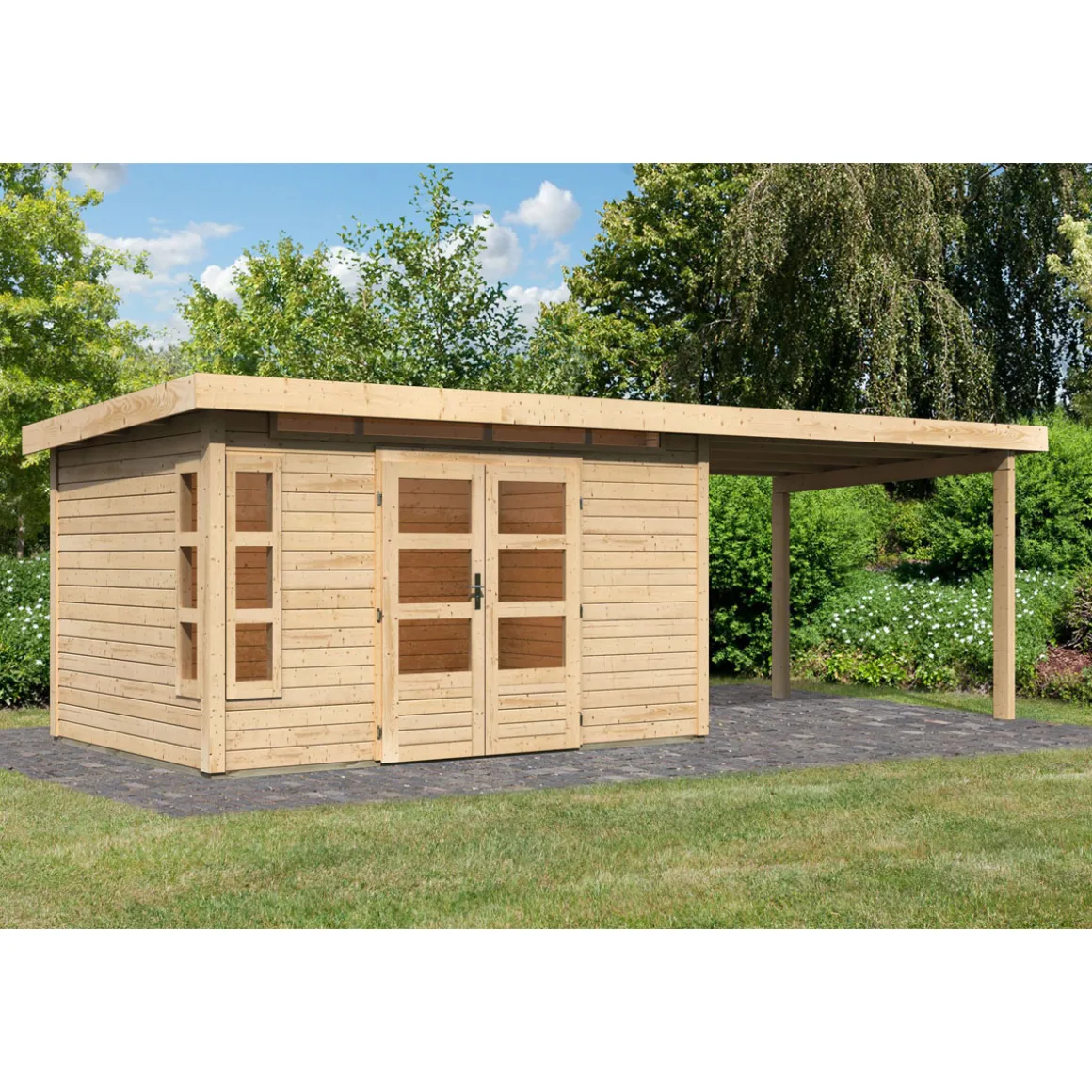 Karibu Blockbohlenhaus Kastorf 7 naturbelassen mit Anbaudach