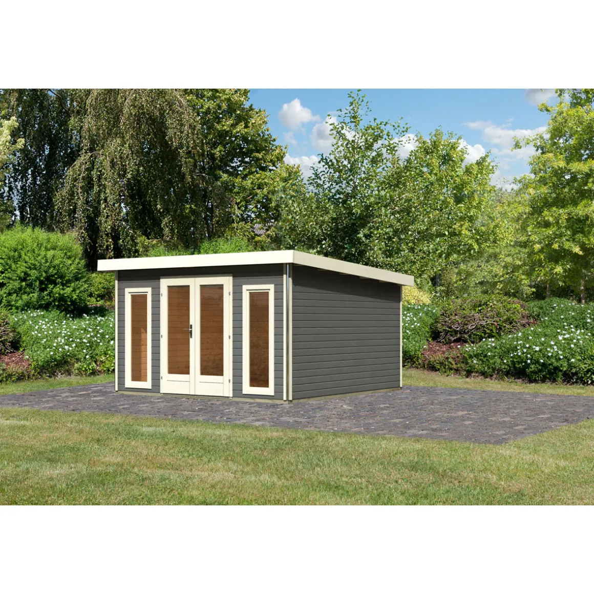Karibu Blockbohlenhaus Radeburg 3 terragrau