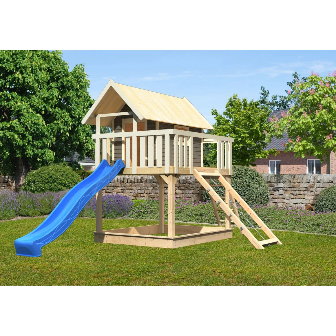 Karibu Fidel inklusive Rampe terragrau Rutsche blau