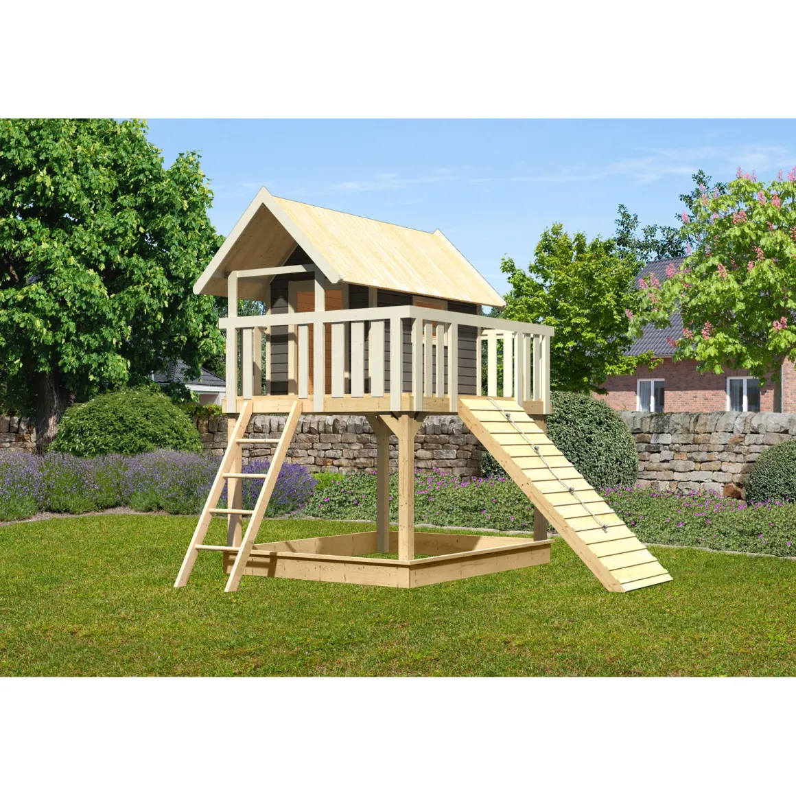 Karibu Fidel und Holzrampe terragrau ohne Rutsche