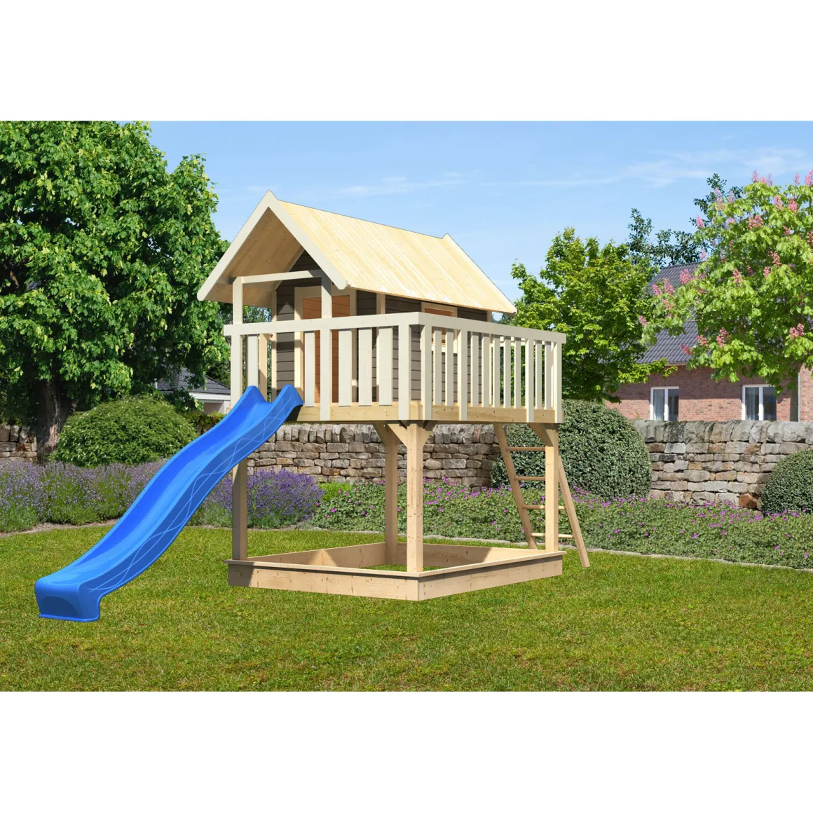 Karibu Fidel und Rutsche terragrau Rutsche blau