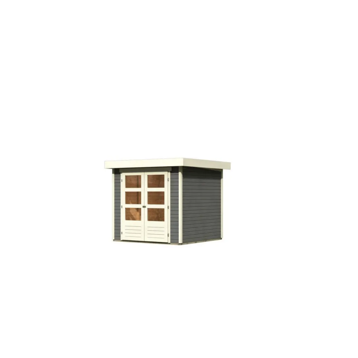 Karibu Gartenhaus-Set Askola 2 mit Anbaudach 2,80 m mit Seiten- und Rückwand terragrau