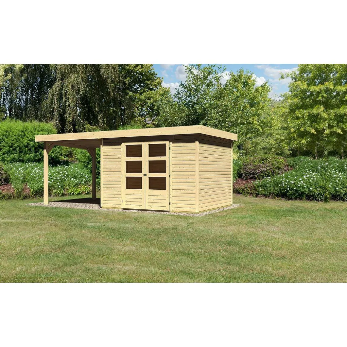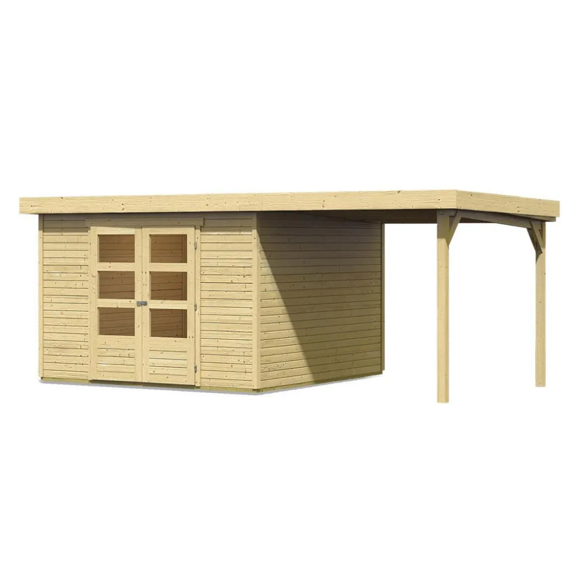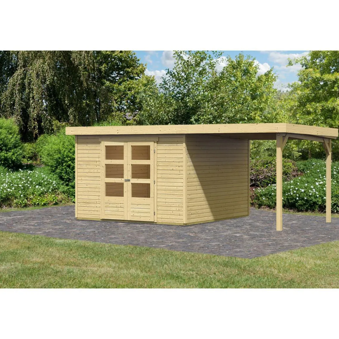 Karibu Gartenhaus Askola 5 mit Anbaudach 225 cm naturbelassen
