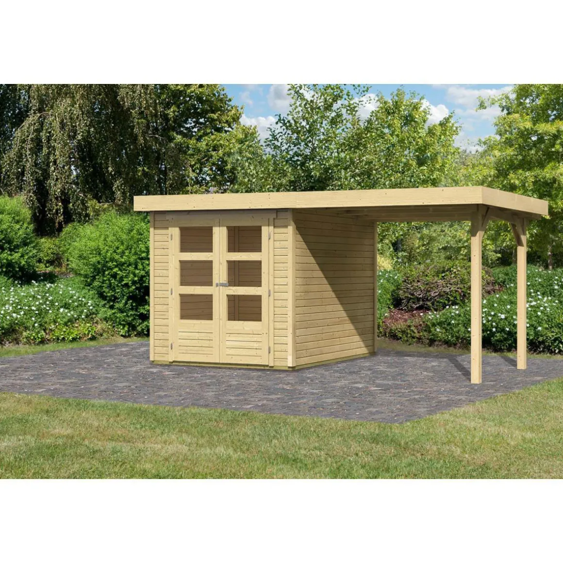Karibu Gartenhaus Askola mit Anbaudach 225 cm naturbelassen 213 x 217 x 218 cm