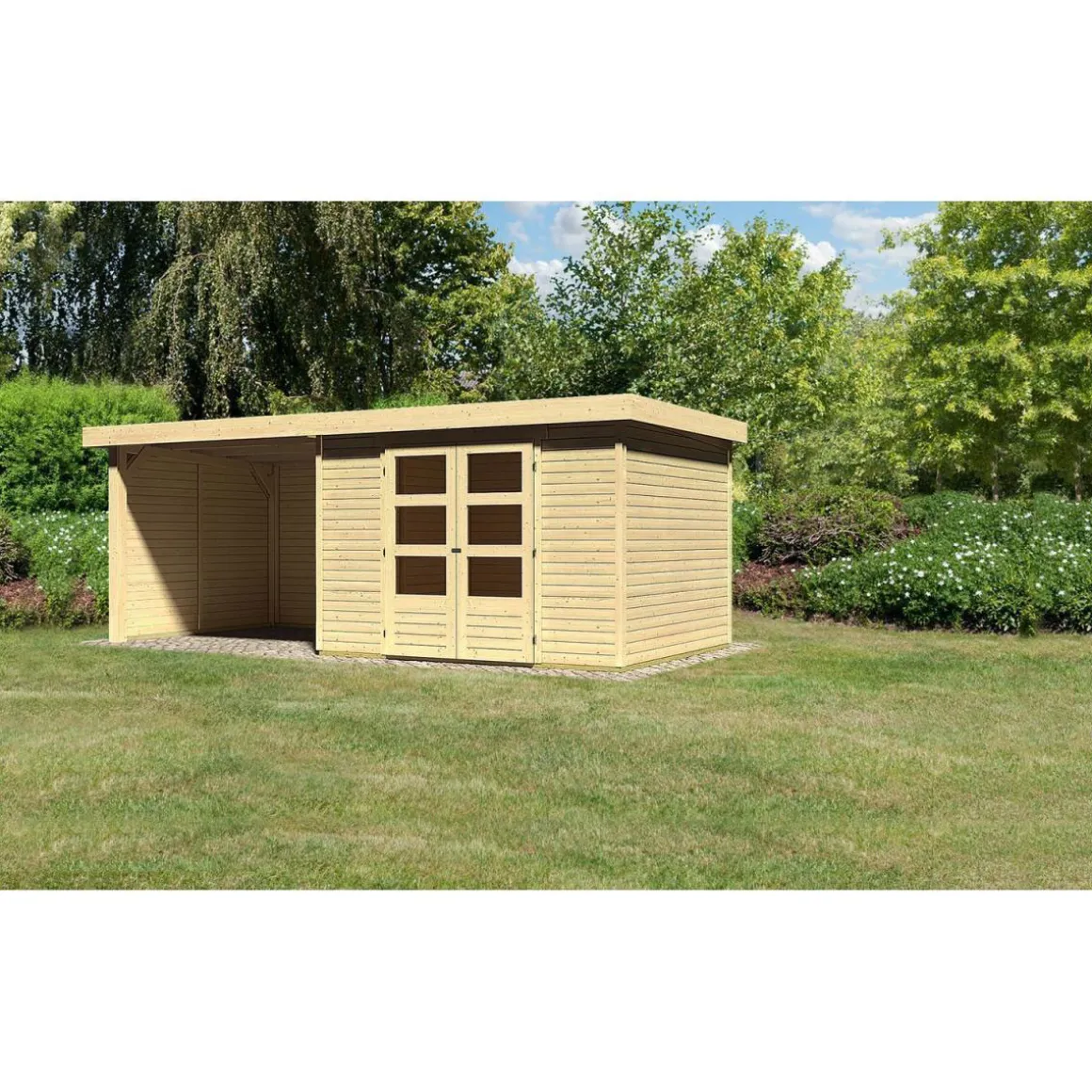 Karibu Gartenhaus Askola mit Anbaudach 265 cm und Seiten-/Rückwand naturbelassen 557 x 246 x 218 cm