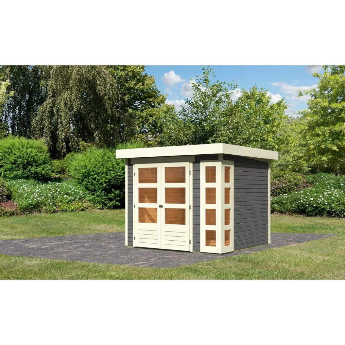 Karibu Gartenhaus-Set Askola 2 mit Anbaudach 2,80 m mit Seiten- und Rückwand terragrau
