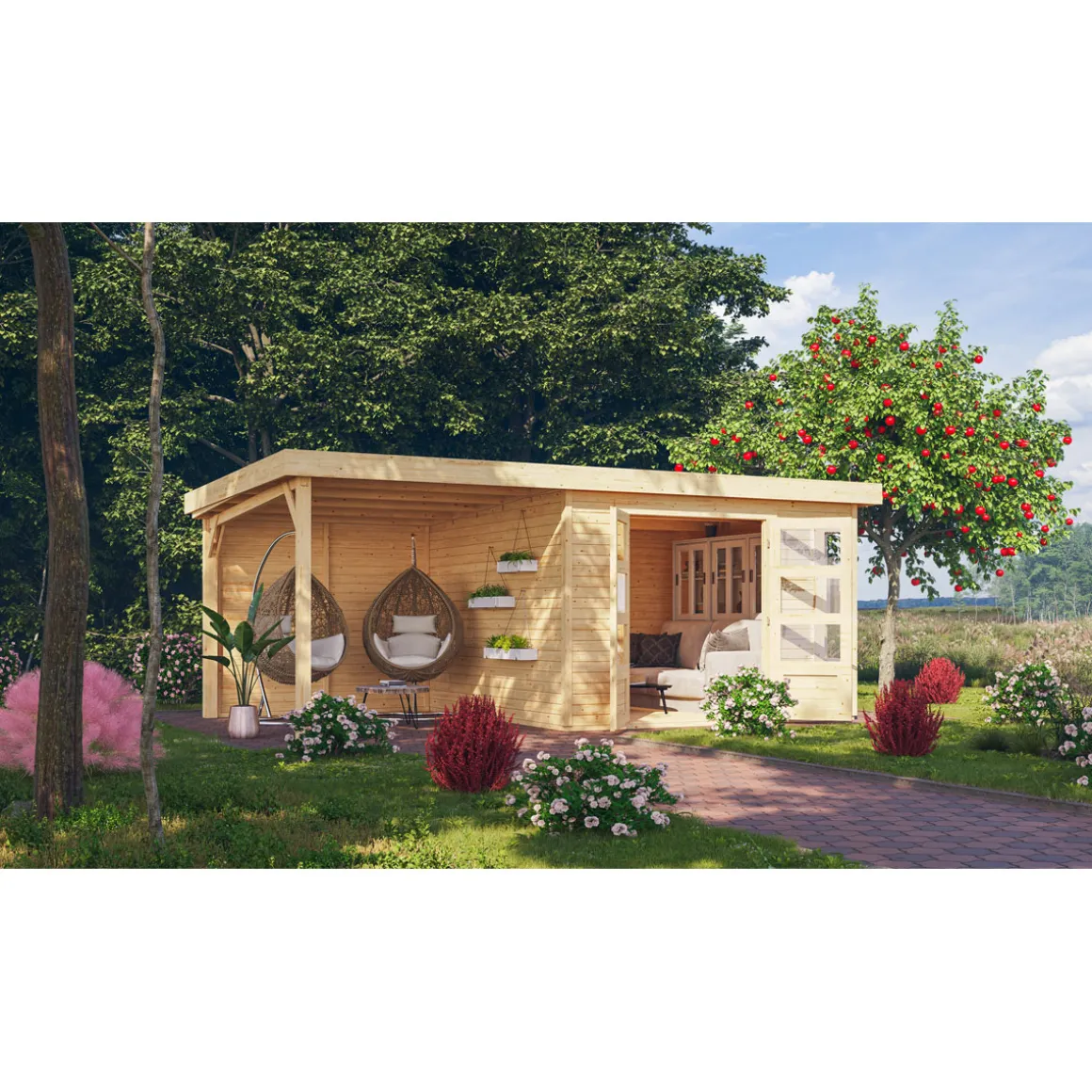 Karibu Gartenhaus Kerko 6 Set mit AD naturbelas