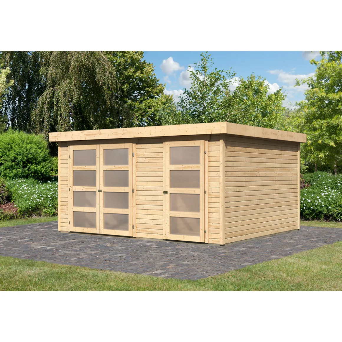 - Gartenhaus aus hochwertiger nordischer Fichte mit wasserabweisender Profilierung