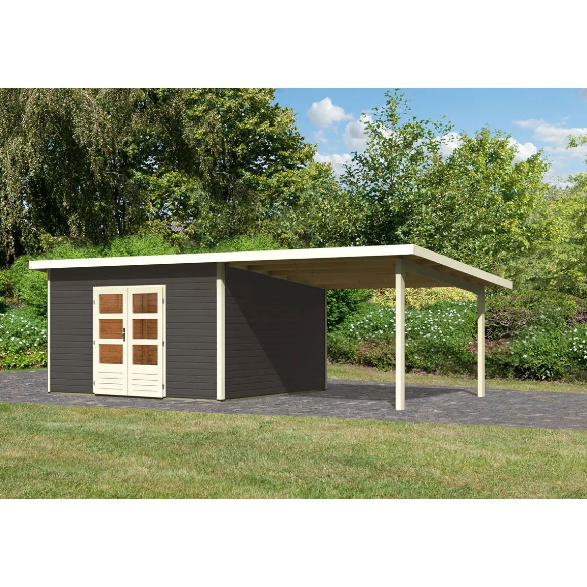 Karibu Gartenhaus Northeim 5 terragrau 40 mm mit Anbaudach