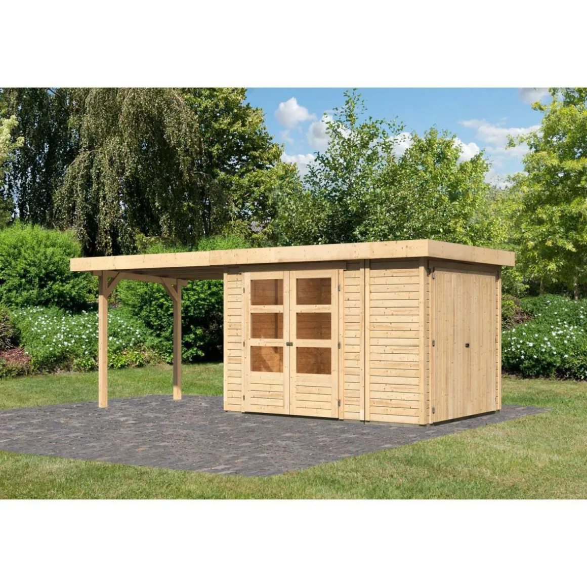 Karibu Gartenhaus Retola 2 inkl Anbauschrank und Anbaudach 2,80 Meter naturbelassen