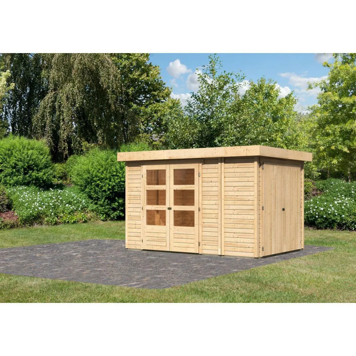 Karibu Gartenhaus Retola 3 inkl Anbauschrank naturbelassen