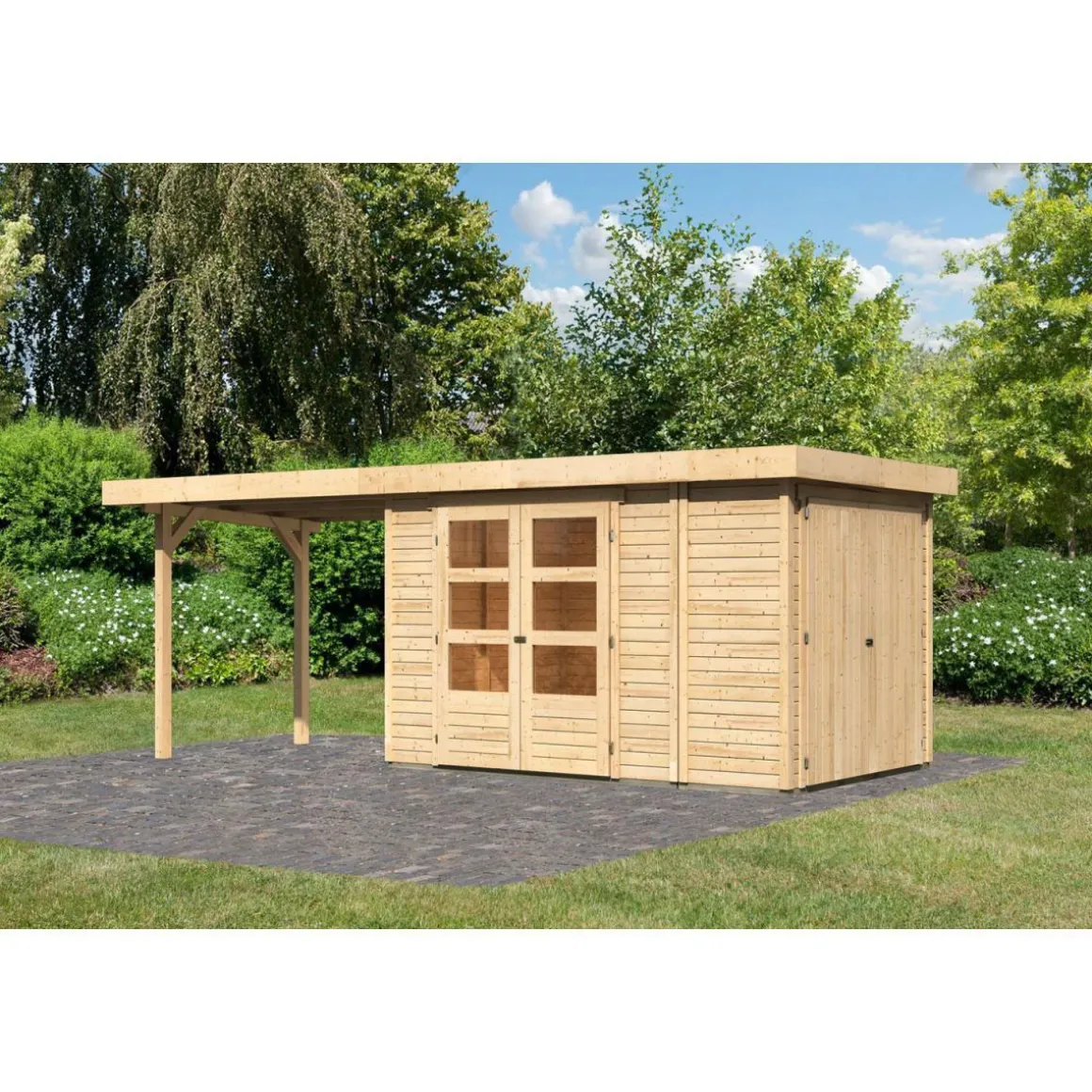 Karibu Gartenhaus Retola 3 inkl Anbauschrank und Anbaudach 2,80 Meter naturbelassen
