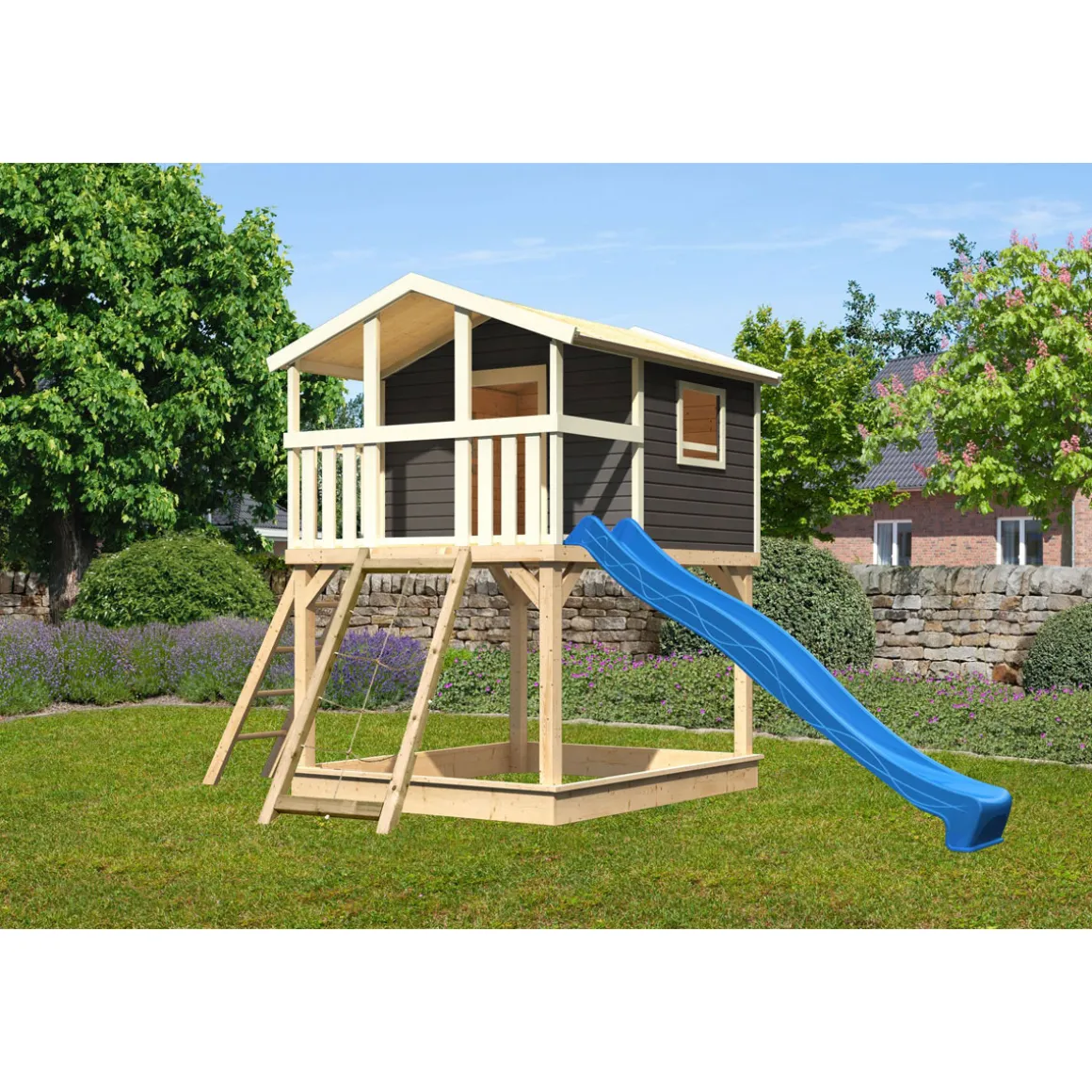 Karibu Stelzenhaus Benjamin natur inkl Rutsche blau und Netzrampe