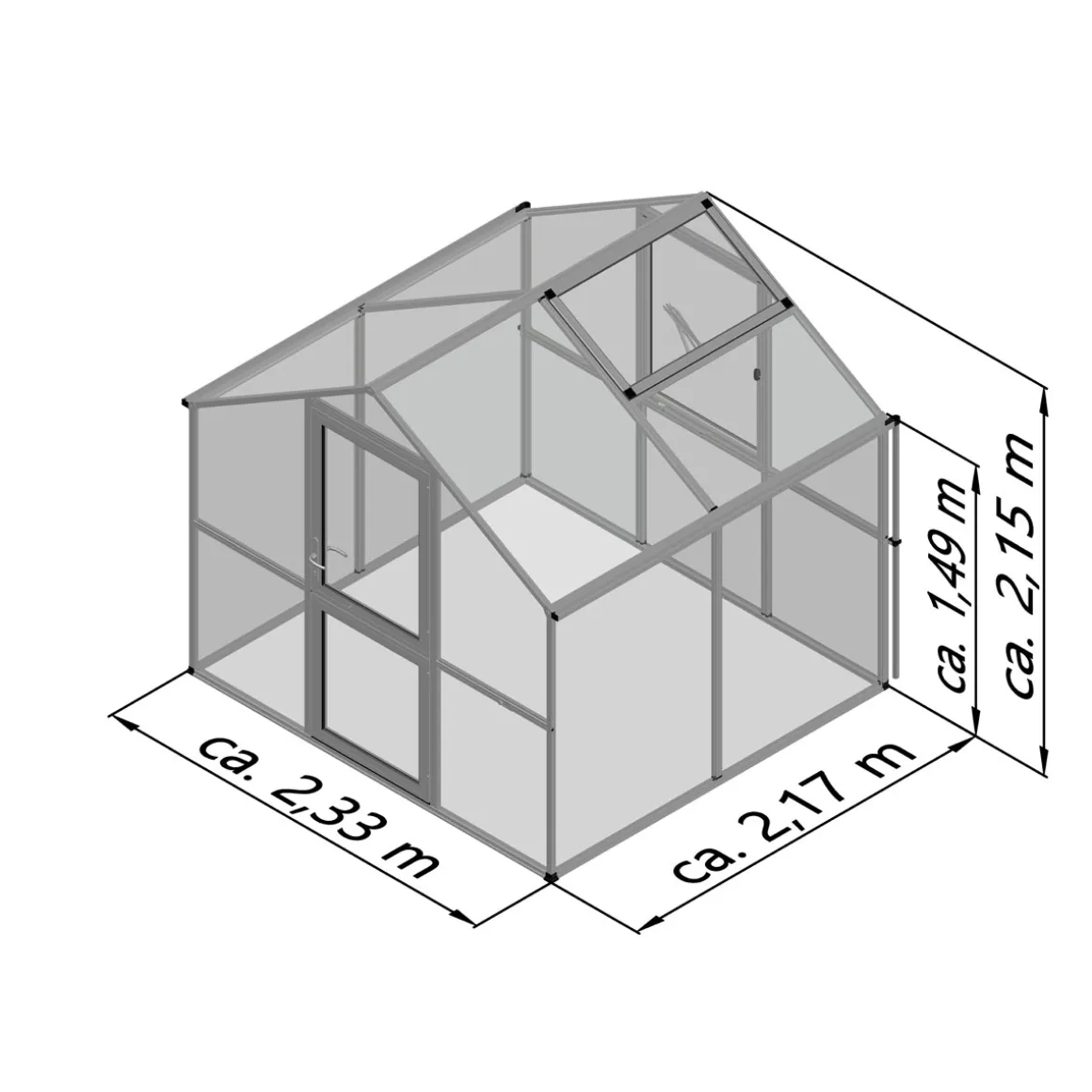 - Rechteckige Grundform mit einer Traufhöhe von 149 cm bietet ausreichend Platz für große Pflanzen