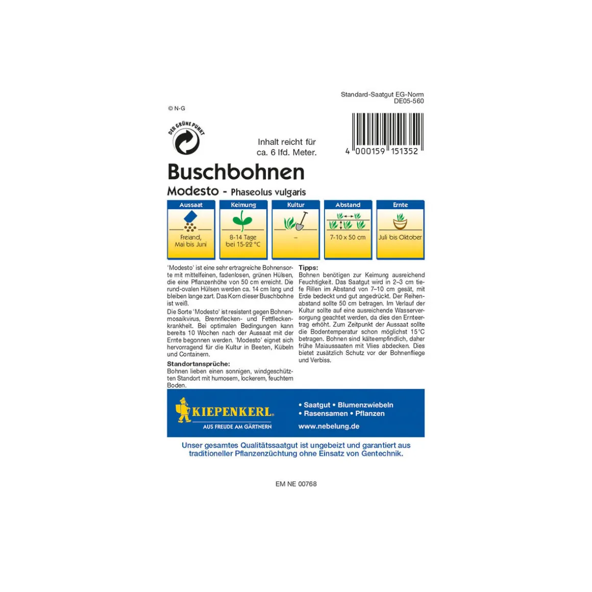 Kiepenkerl Buschbohne Modesto Produktdetails
