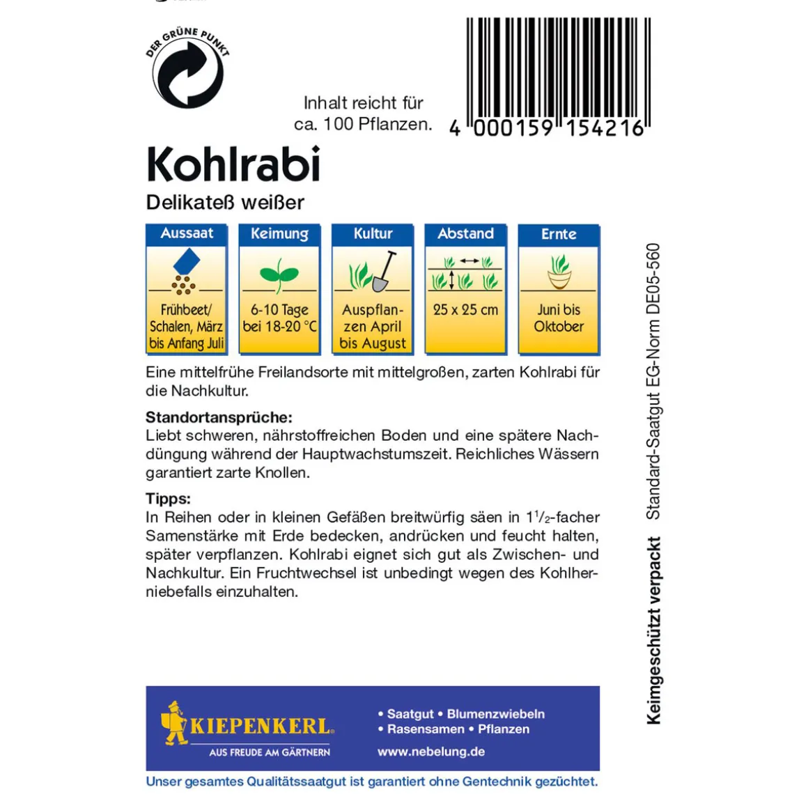 Kiepenkerl Kohlrabi Delikateß weiß – Saatgut für köstlichen Frischverzehr und Kochgenuss