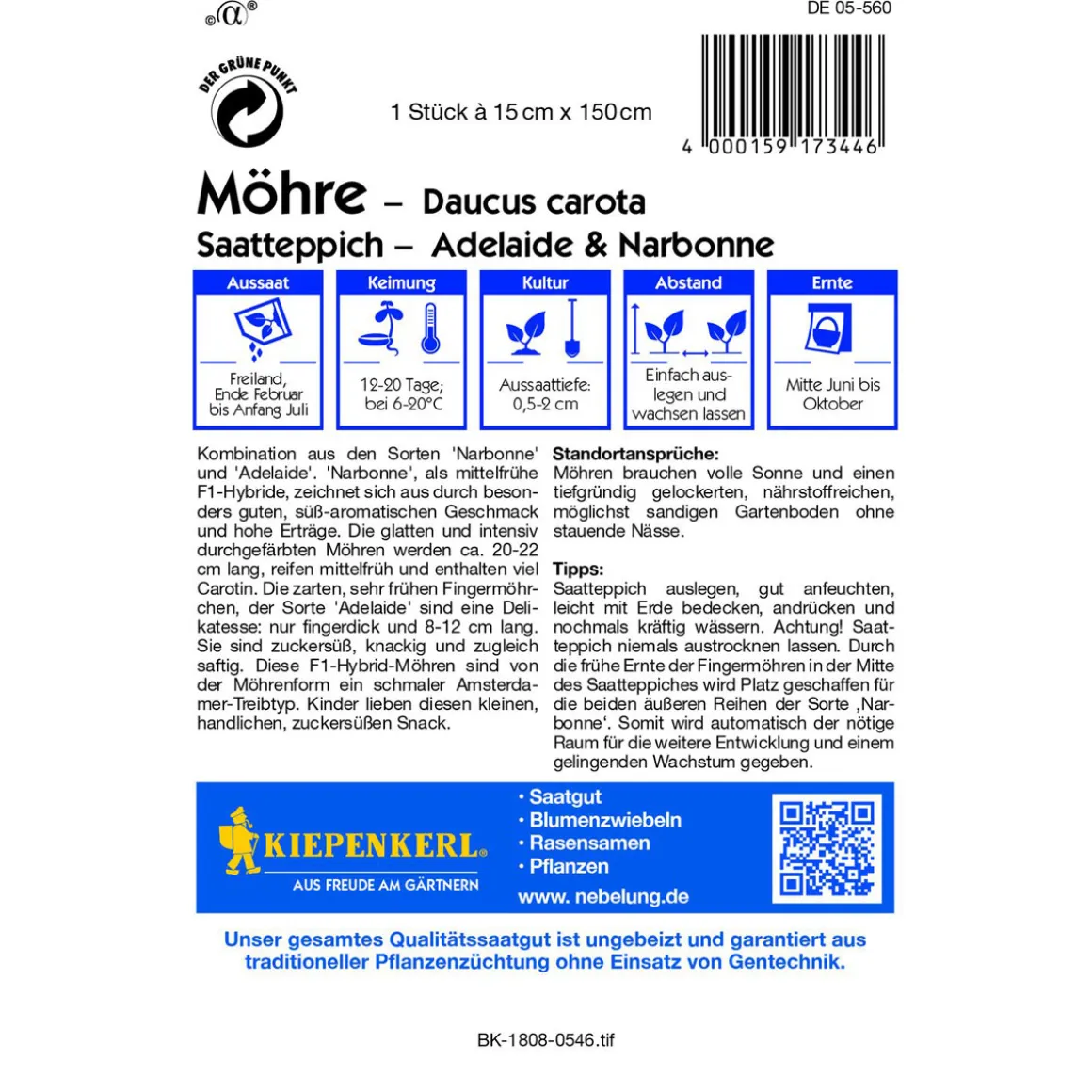 Eigenschaften des Kiepenkerl Möhre Narbonne Adelaide Saatteppich: