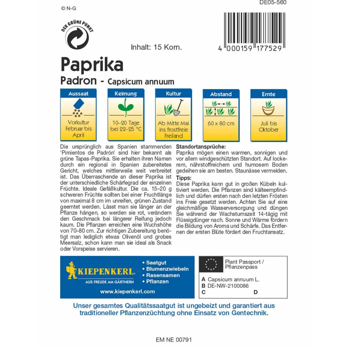 Kiepenkerl Paprika Padron – Eine spanische Köstlichkeit für den eigenen Garten