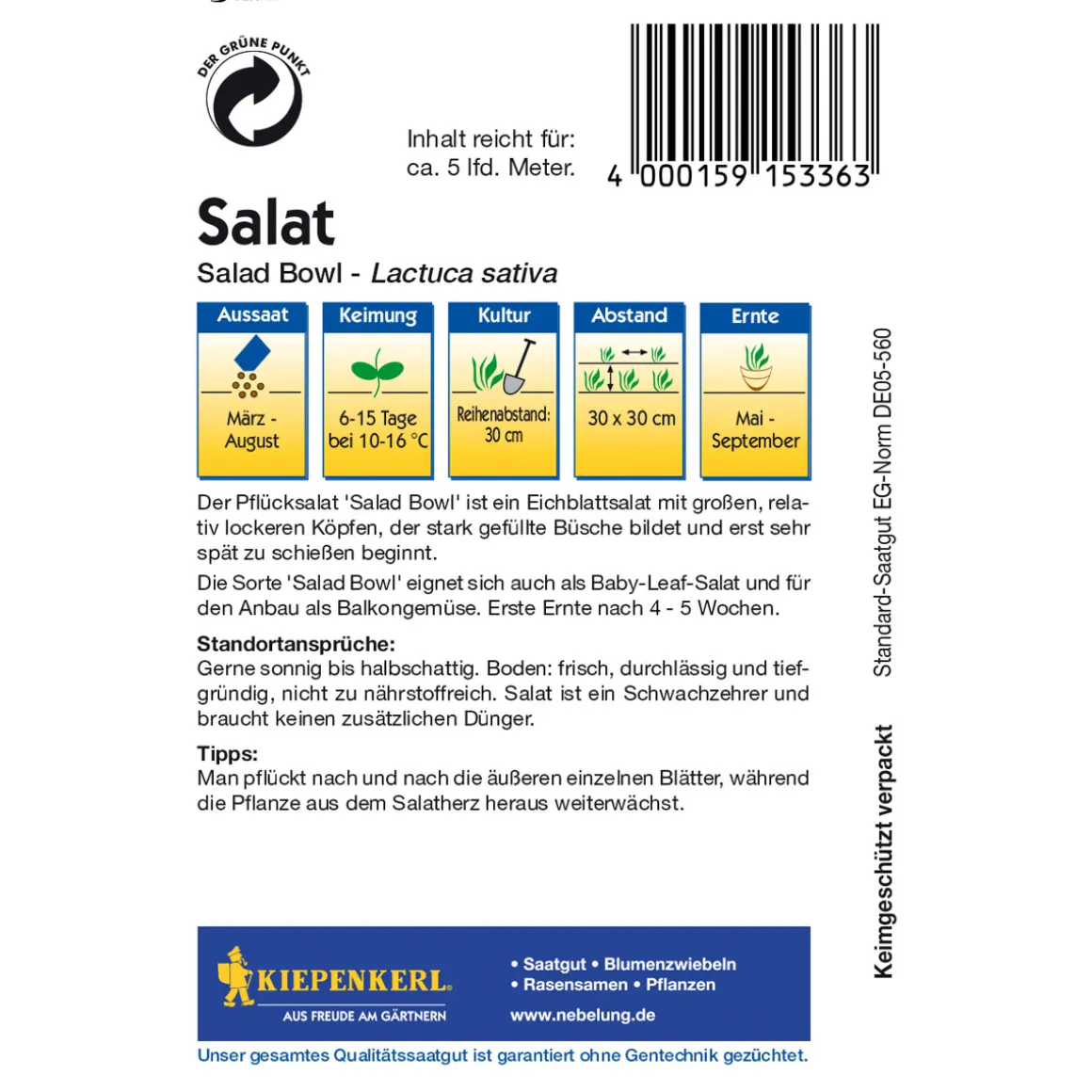 - Erntezeitraum reicht von Mai bis September – genießen Sie den Sommer mit frischem Salat!