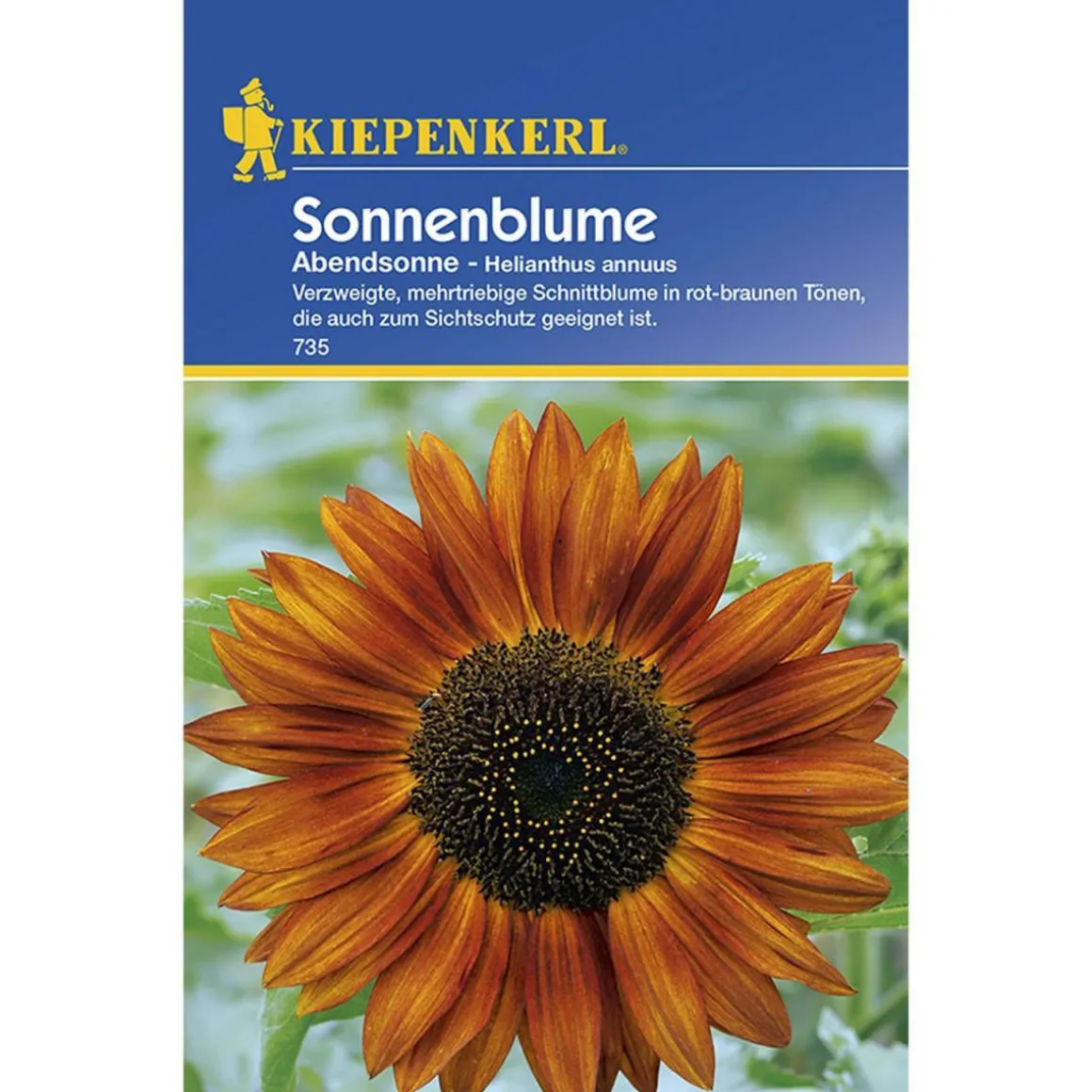 Die Kiepenkerl Sonnenblume Abendsonne ist eine einjährige Blumenmischung, die im Sommer und Herbst blüht. Mit ihrem braunen Farbton und einer Wuchshöhe von bis zu 200 cm ist sie ein echter Hingucker in jedem Garten.