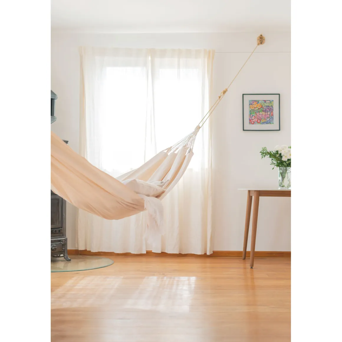 Die La Siesta Kingsize-Hängematte Modesta Latte Baumwolle eignet sich perfekt für alle, die gerne entspannen und dabei nicht auf Komfort verzichten möchten. Ob im Garten oder in der Wohnung – diese Hängematte bietet Ihnen ein gemütliches Plätzchen zum Relaxen.