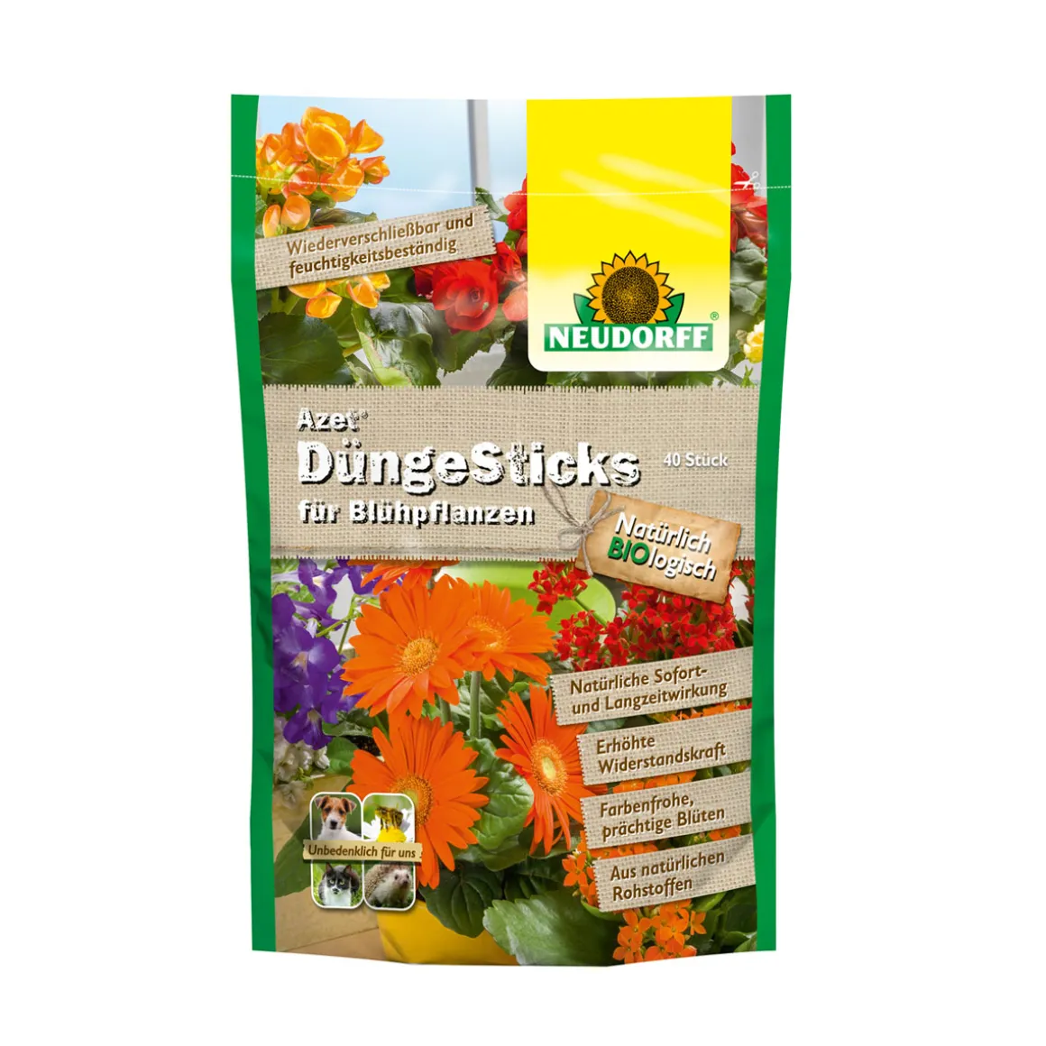 Neudorff Azet Düngesticks für Blühpflanzen – Organische Düngestäbchen mit lebenden Mikroorganismen
