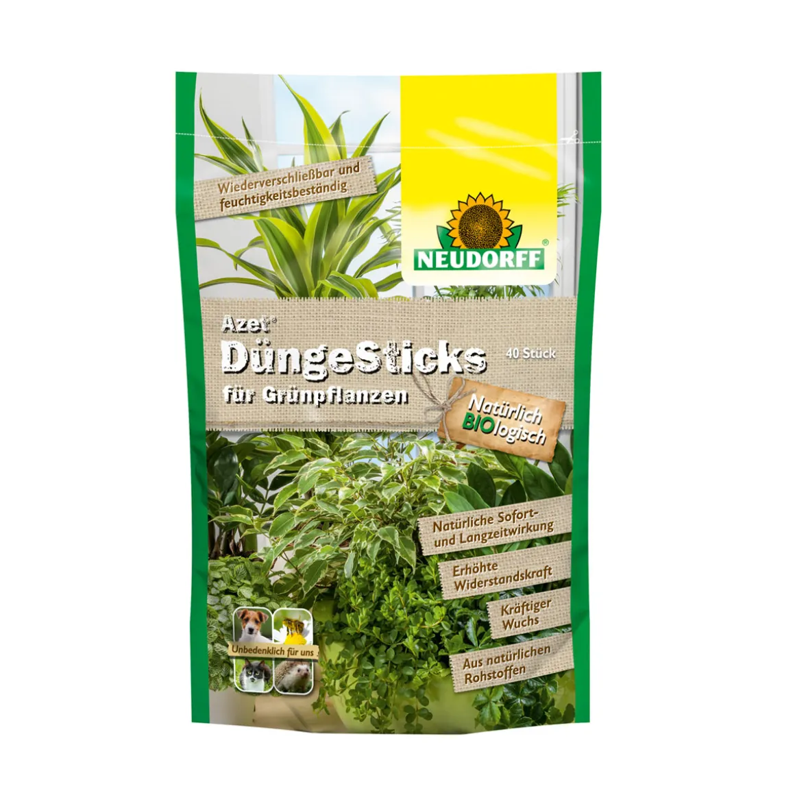 Die Neudorff Azet Düngesticks sind ideal für alle Kunden, die ihre Grünpflanzen auf natürliche Weise düngen möchten und dabei auf eine Sofort- & Langzeitwirkung setzen.
