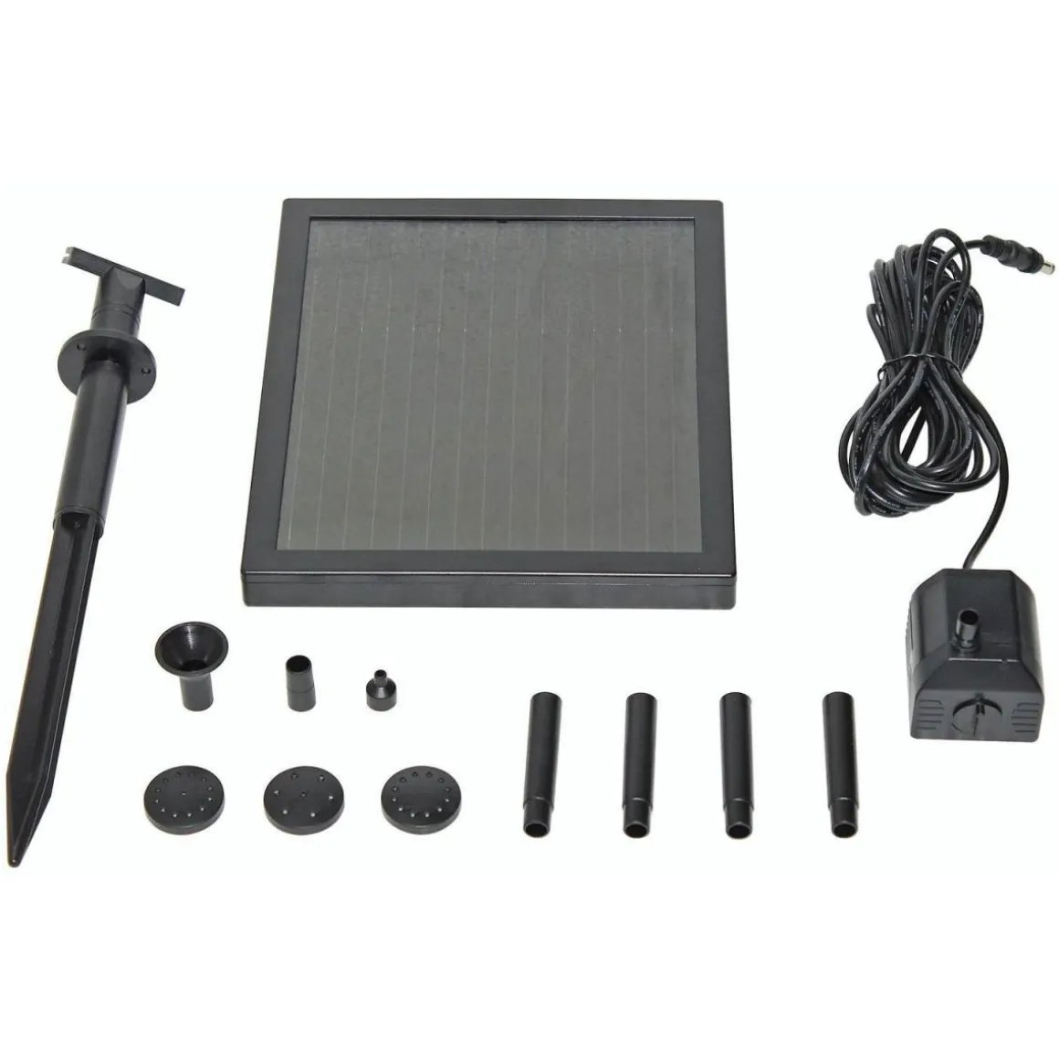 - Inklusive Springbrunnenpumpe mit 4 Fontänenaufsätzen, Solarpanel und Erdspieß